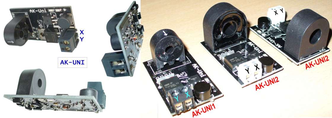 Az AK-UNI-1 áramváltóján 3db 1mm2-es sodrott vezeték éppen átfér, ami az átkapcsolás idõtartamára a