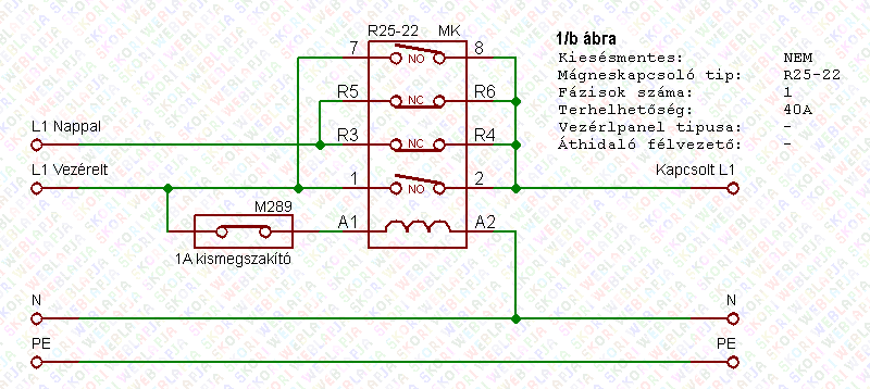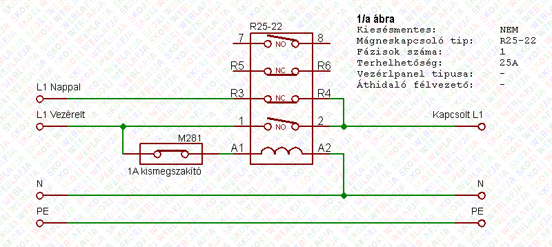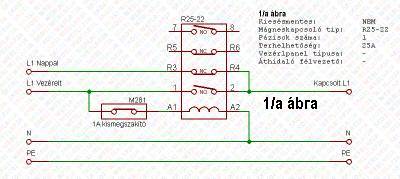 tehát bekapcsolt vezérelt áram esetén a nappali áram fázisához képest nincs feszültség-különbség.