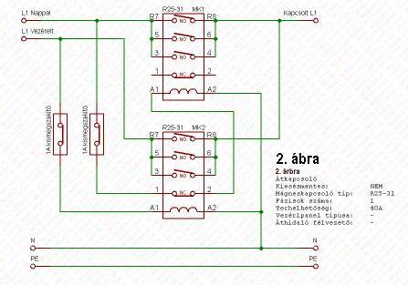 - Csak olyan mágneskapcsoló alkalmas a feladatra, amelynek nem csak a záró, hanem a bontó érintkezoje