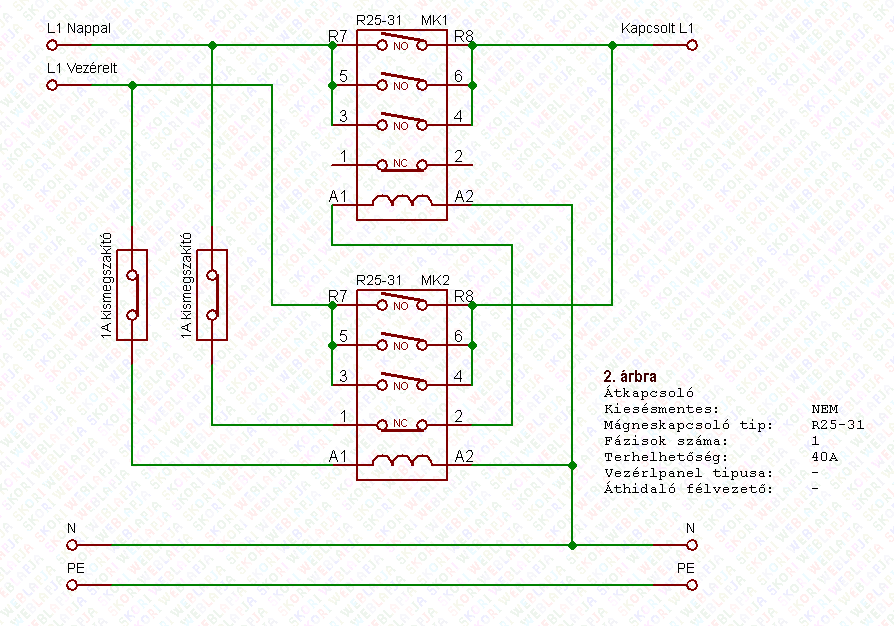 Elõször nézzük, hogyam is kell felépíteni egy egyszerû mágneskapcsolós átkapcsoló áramkört: