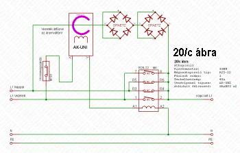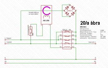 Az eredeti 20/b ábra szerinti rajzot kiegészítettem egy 250VAC/1uF-os X kondenzátorral, és egy 22Ω 1...2W ellenállással.