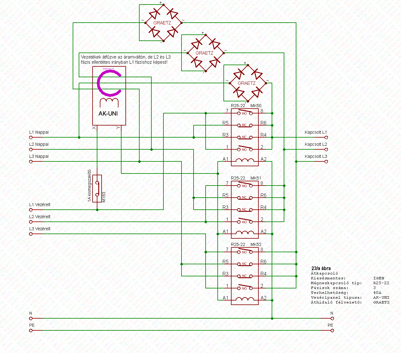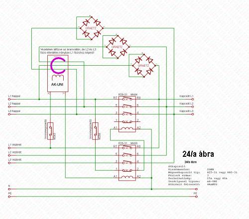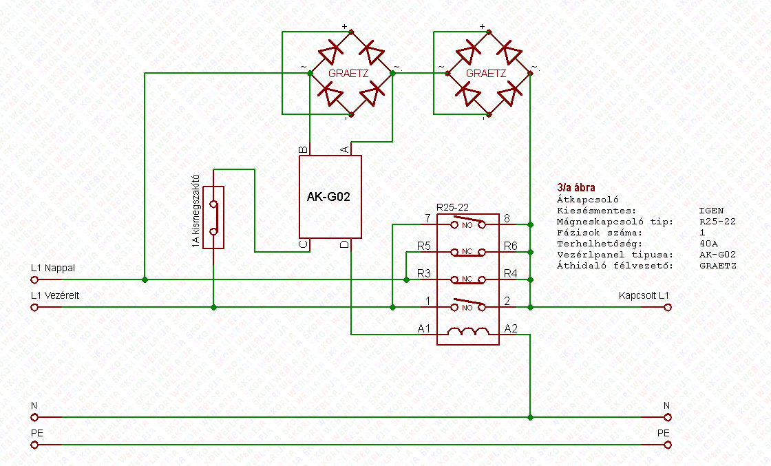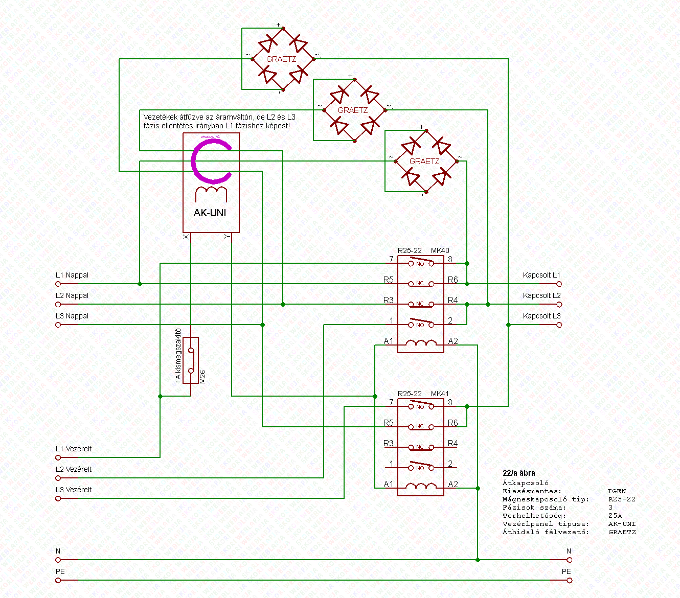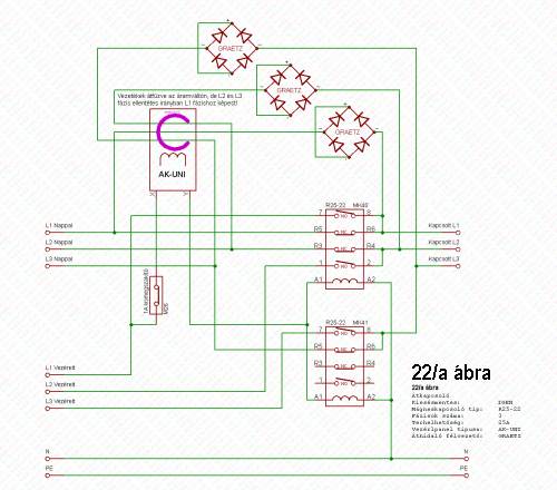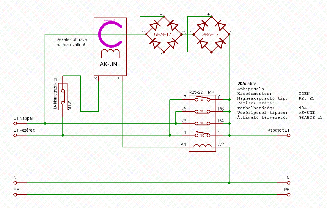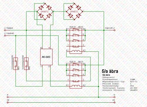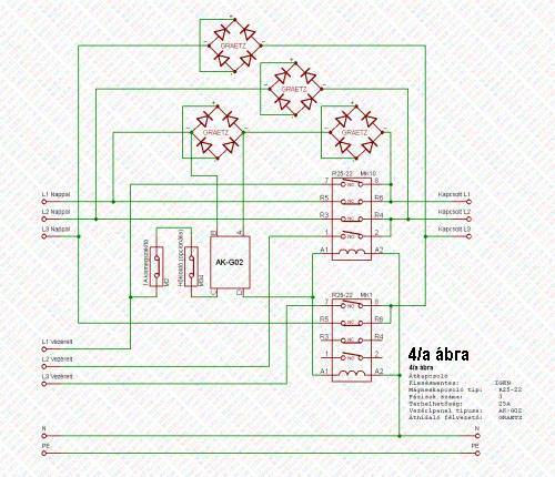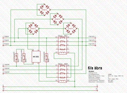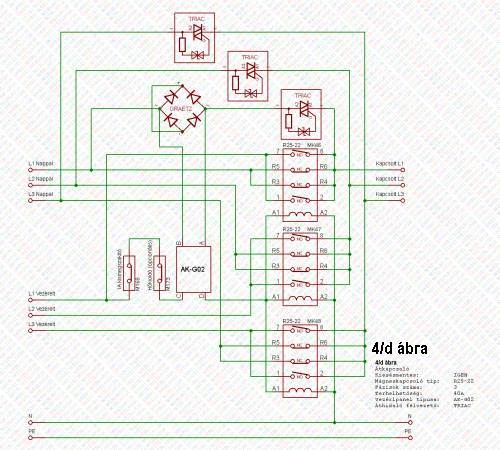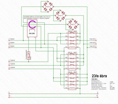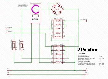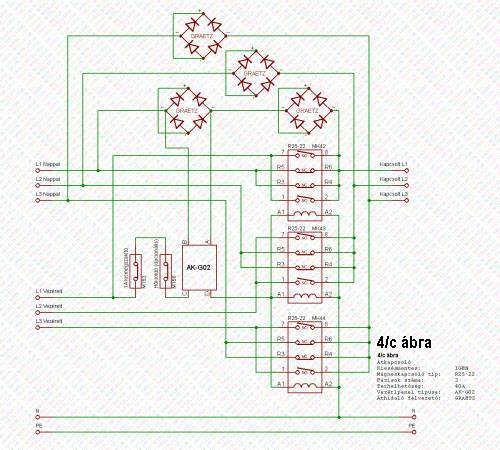 Miért van többféle rajz, és melyiket érdemes megépíteni? 20/a ábrán a mágneskapcsolót egy nagy áramú graetz