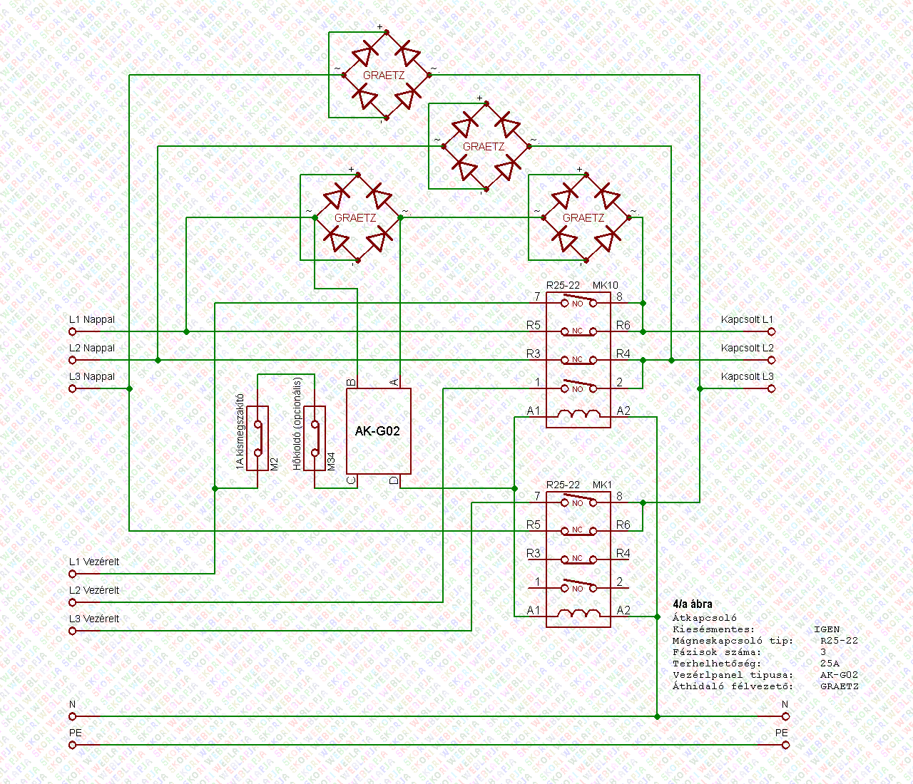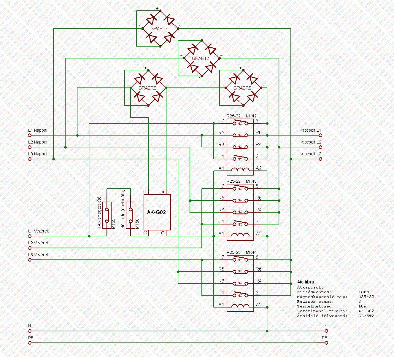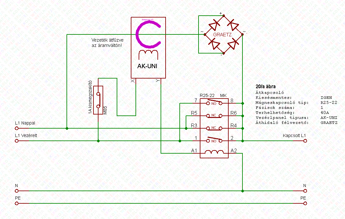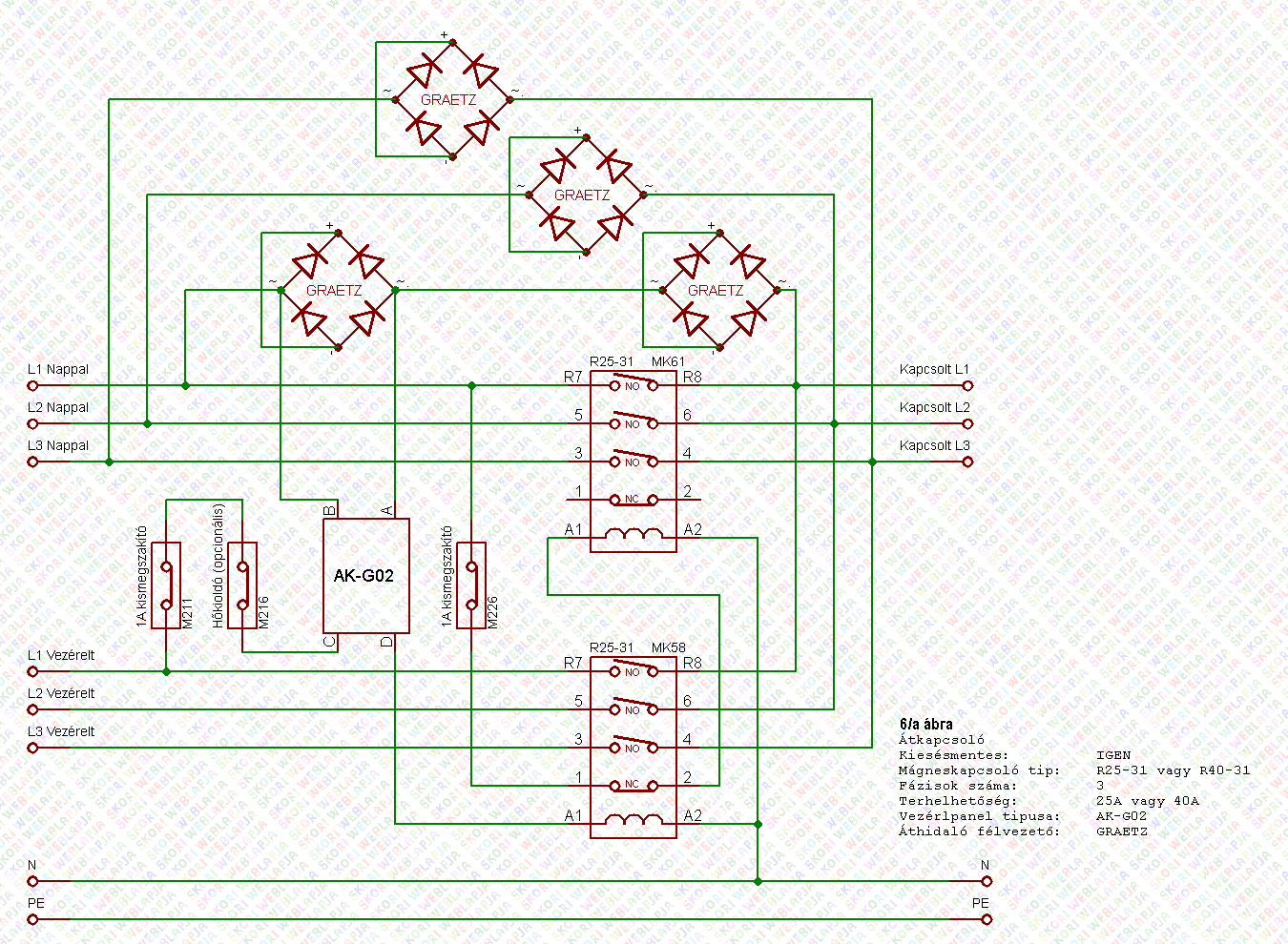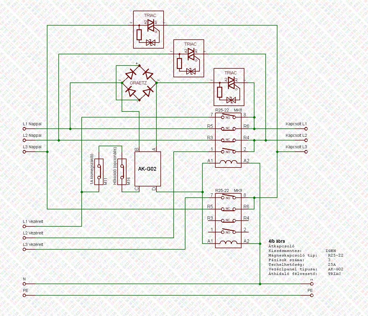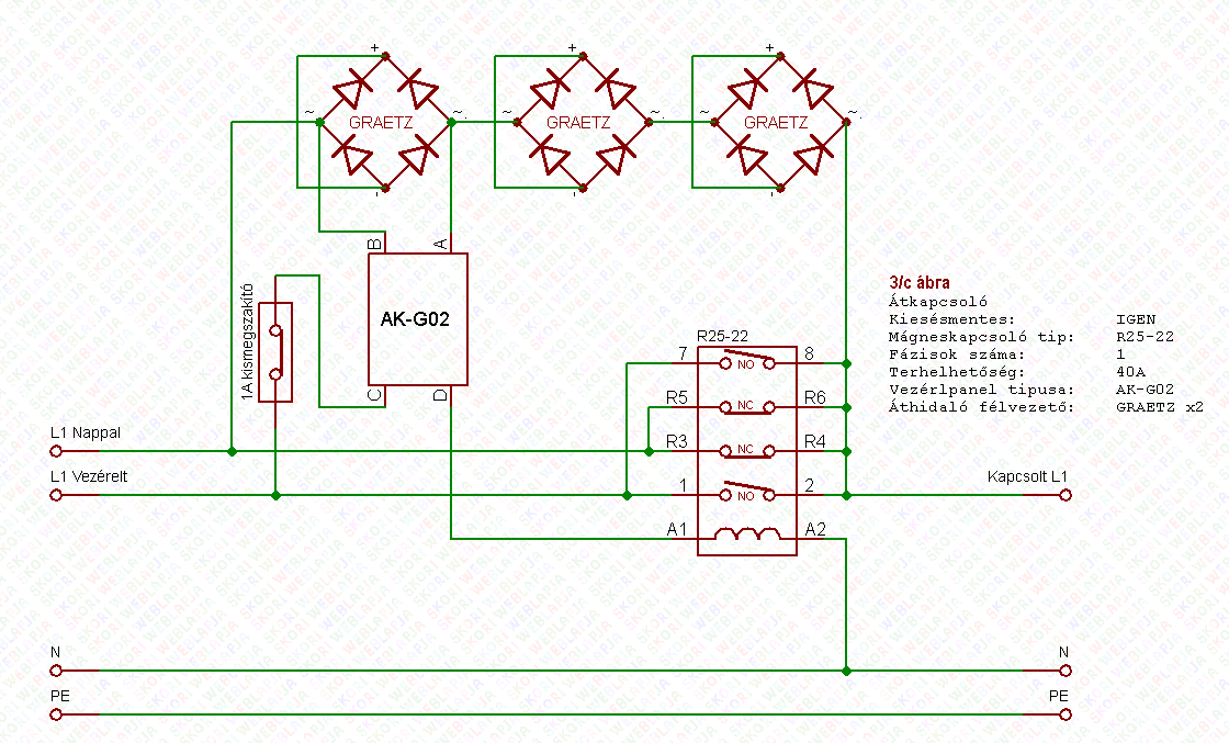 Miért van többféle rajz, és melyiket érdemes megépíteni? 20/a ábrán a mágneskapcsolót egy nagy áramú graetz