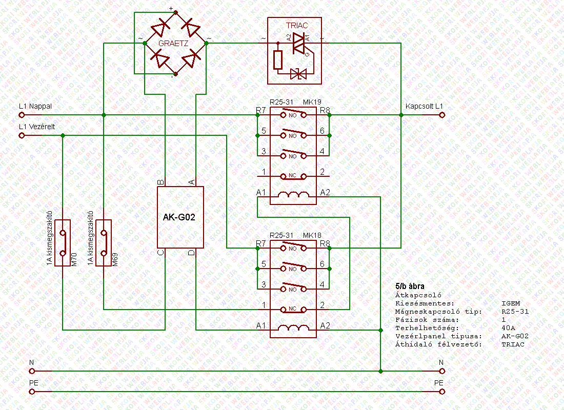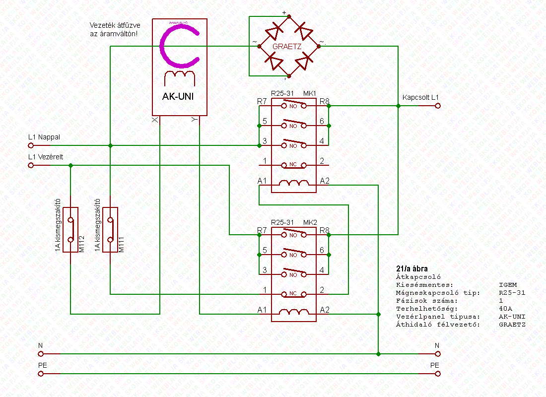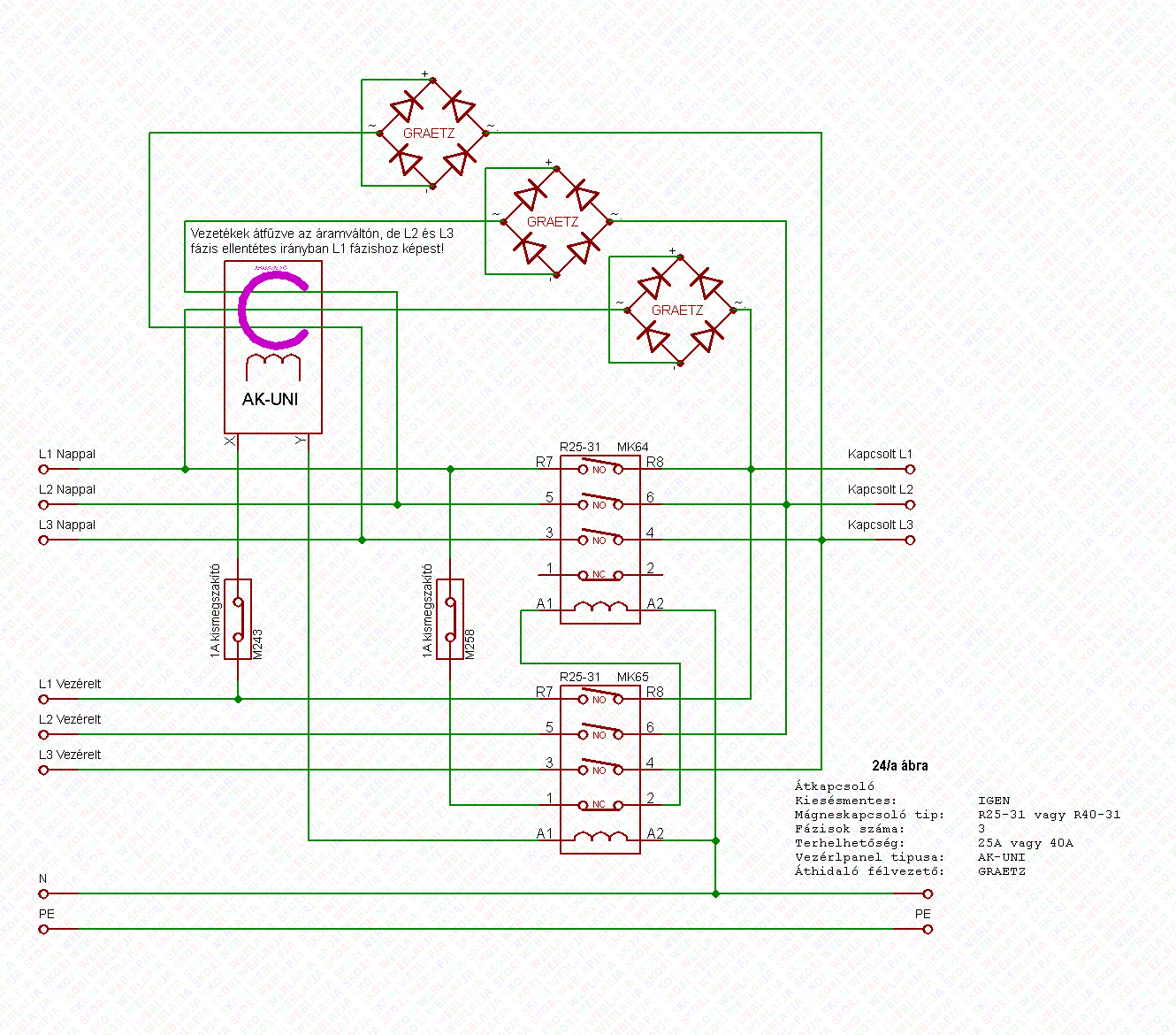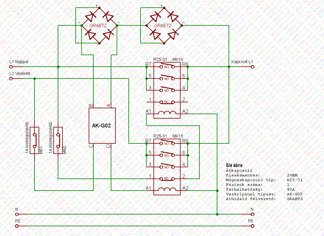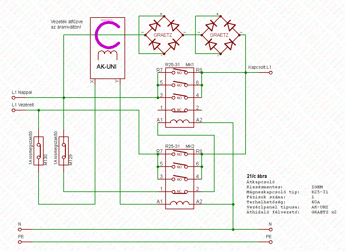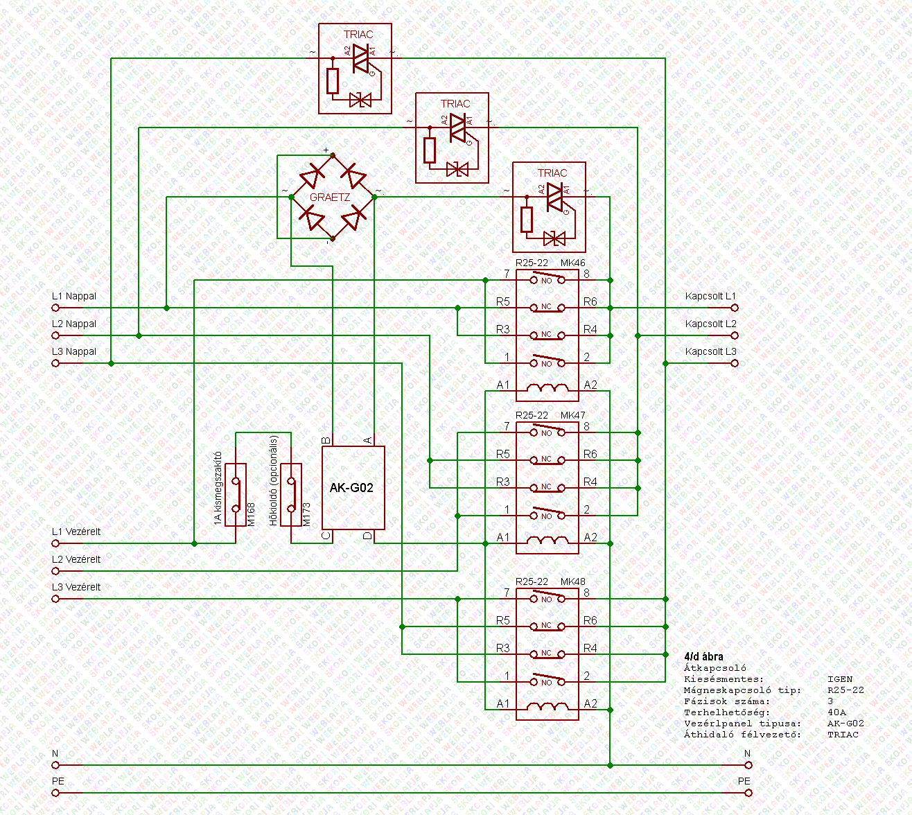 Miért van többféle rajz, és melyiket érdemes megépíteni? 20/a ábrán a mágneskapcsolót egy nagy áramú graetz