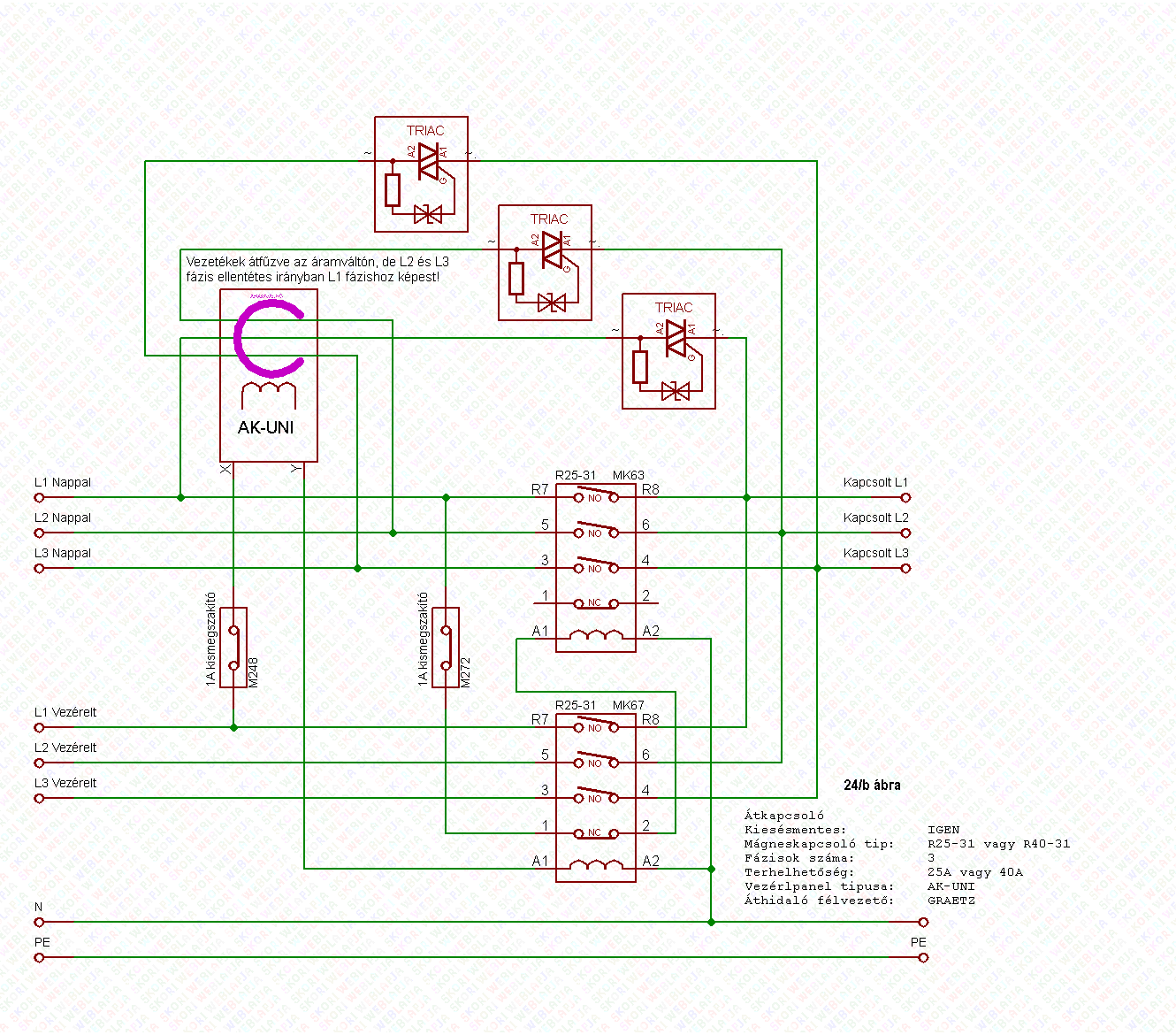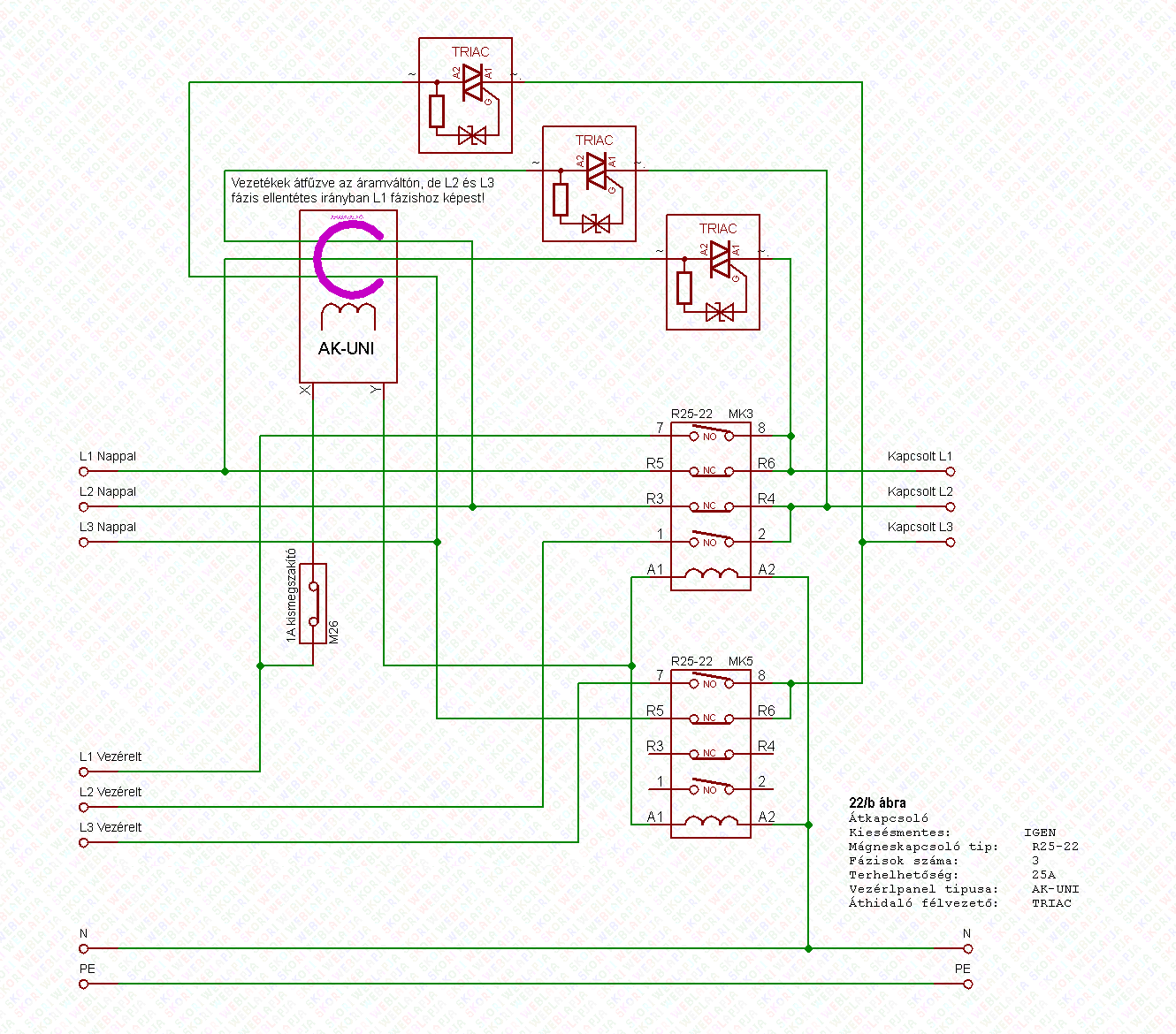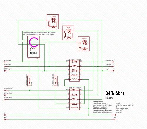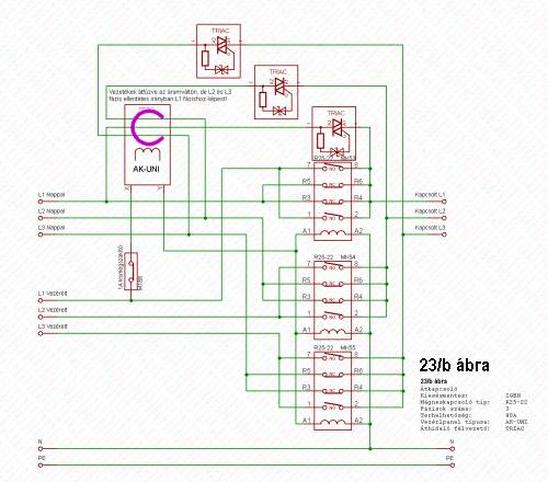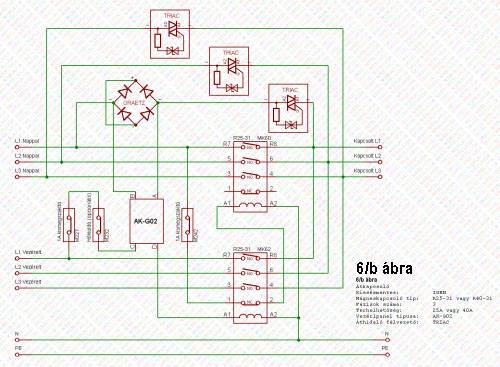 elektronikával vezérelt triak-ot), ami az átkapcsolás ideje alatt áthidalja a mágneskapcsoló érintkezojét,