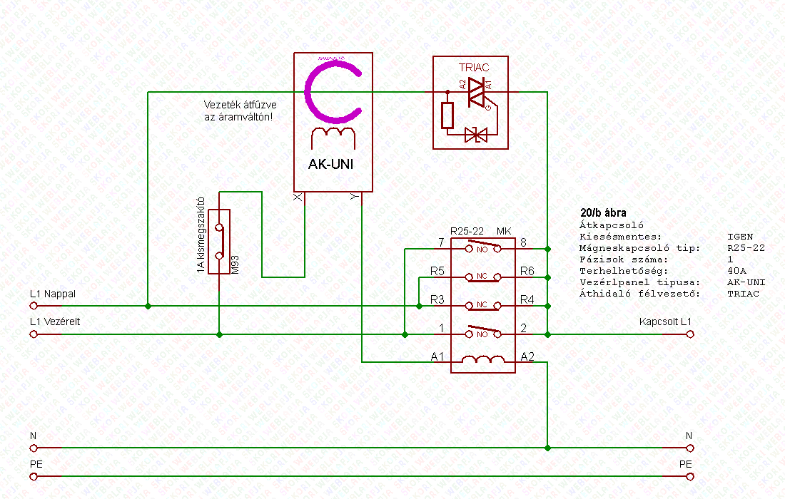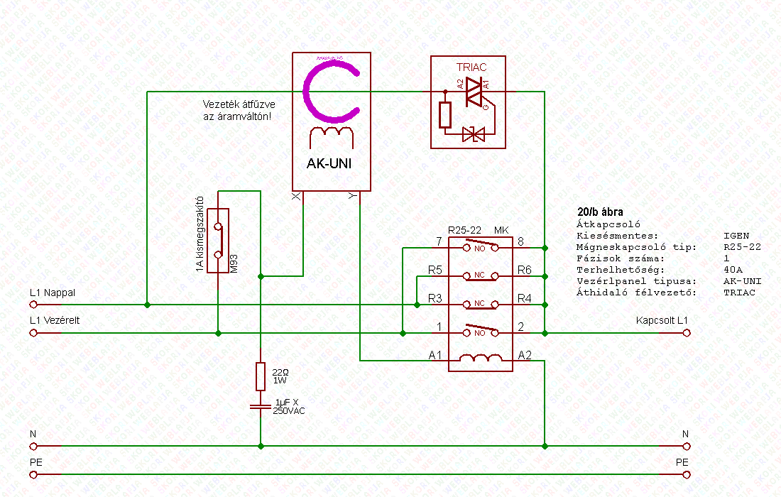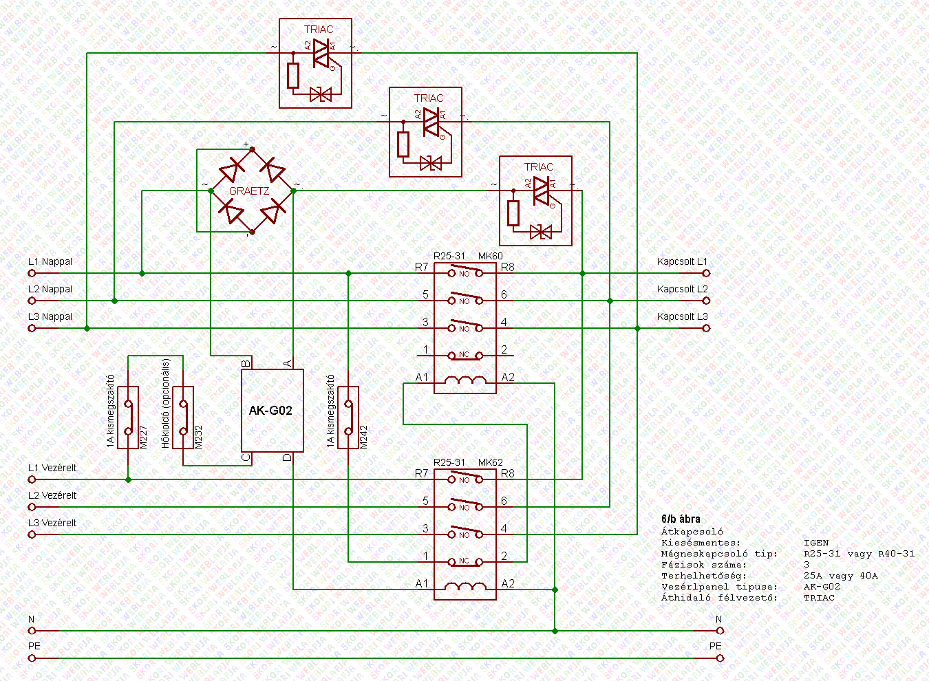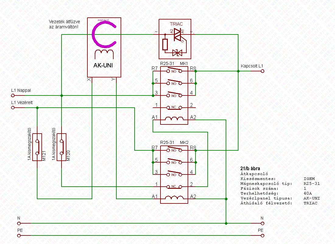 elektronikával vezérelt triak-ot), ami az átkapcsolás ideje alatt áthidalja a mágneskapcsoló érintkezojét,