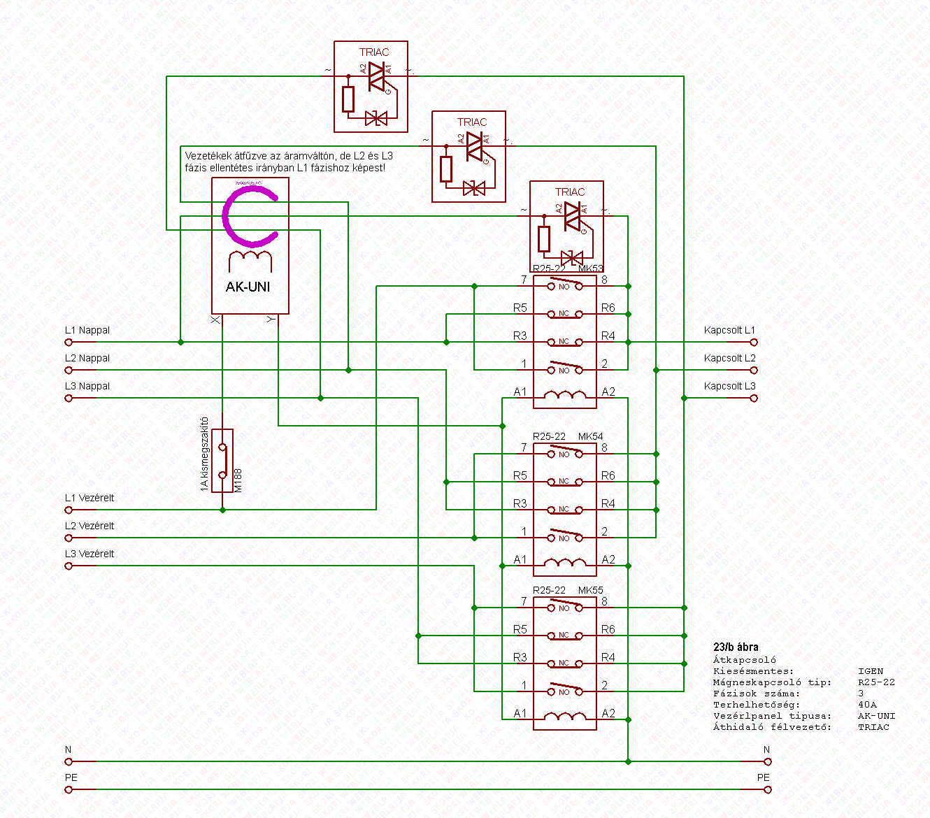 és a vezeték keresztmetszetek ismeretében. Bizonytalan esetben, ha nem sikerül dönteni, akkor a triakos megoldással lehet biztosra menni.
