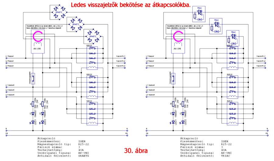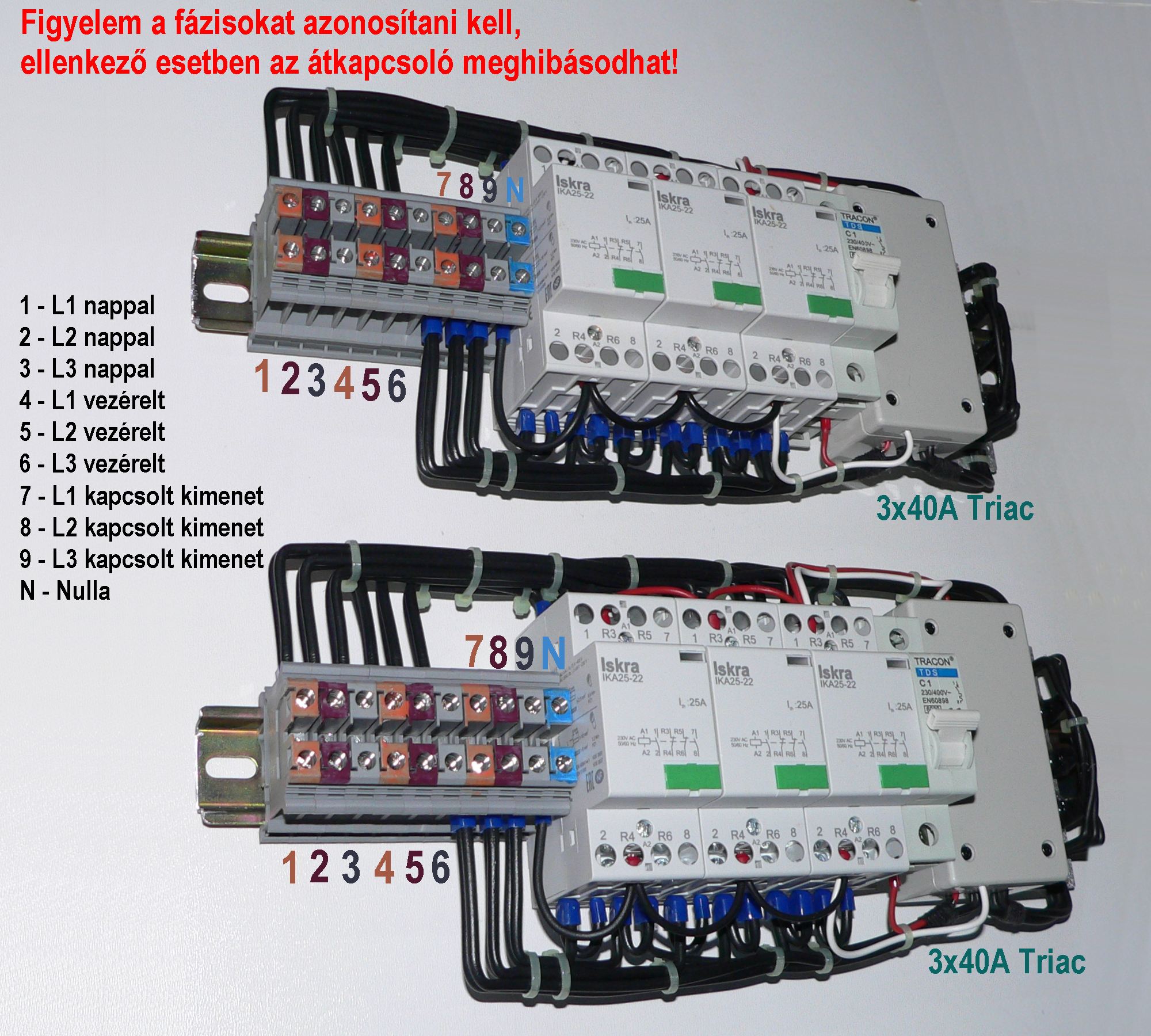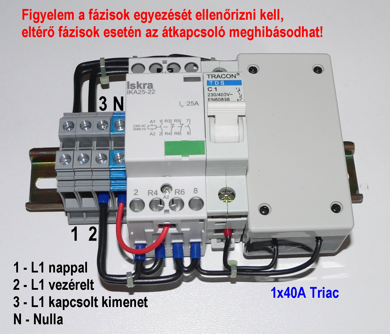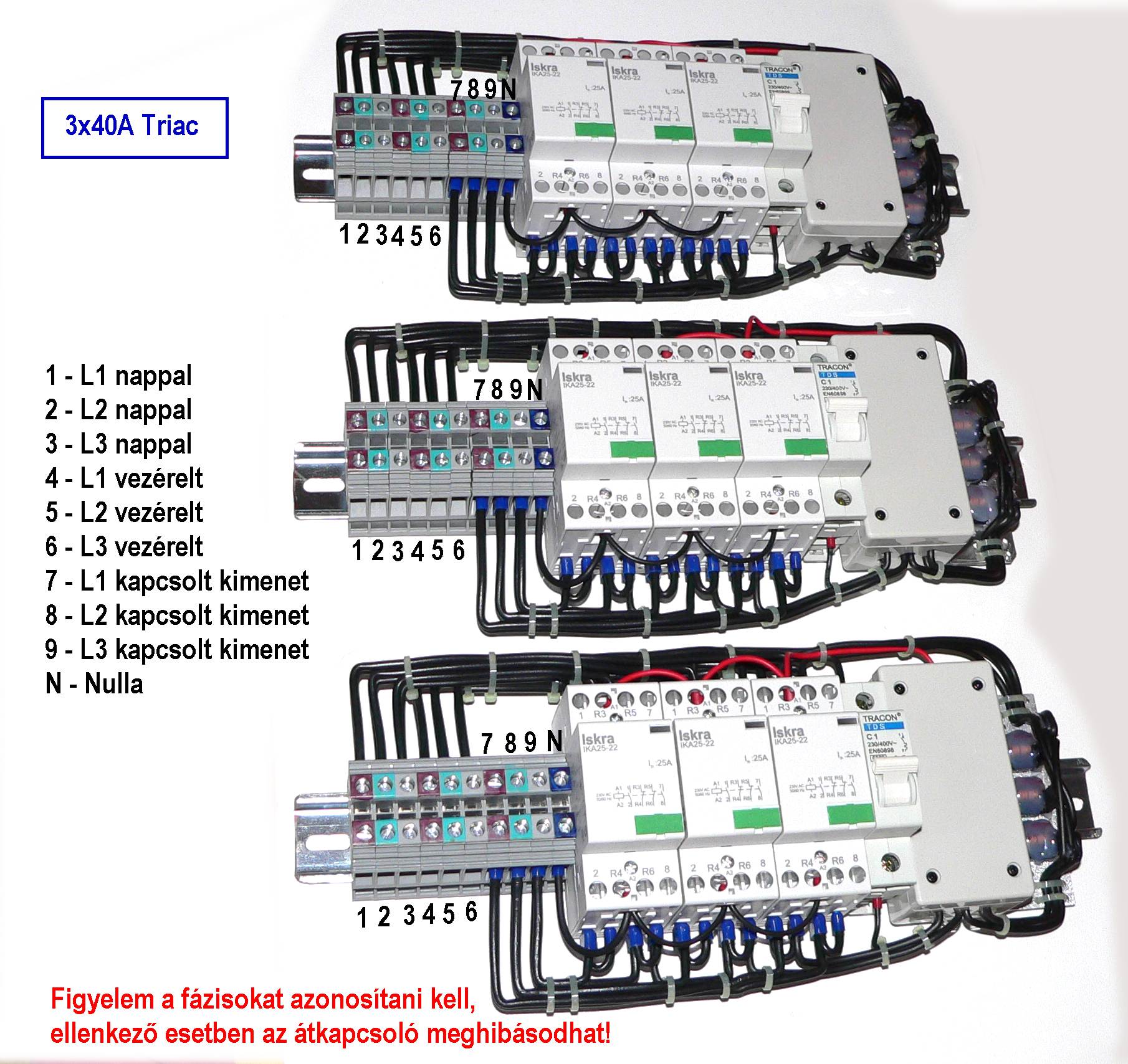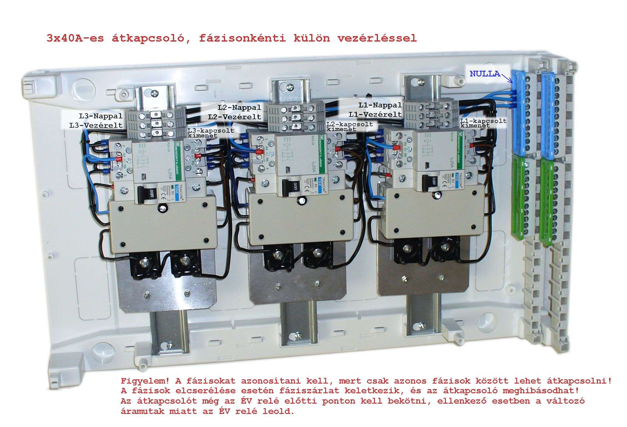 átkapcsoló 2db mágneskapcsolóval van felépítve, addig a 3x40A-es verzió