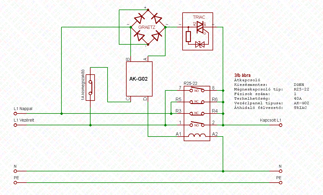 Az általam kifejlesztett elektronika 50A-es graetz hidat vagy 40A-es triakot használ az áthidaláshoz.