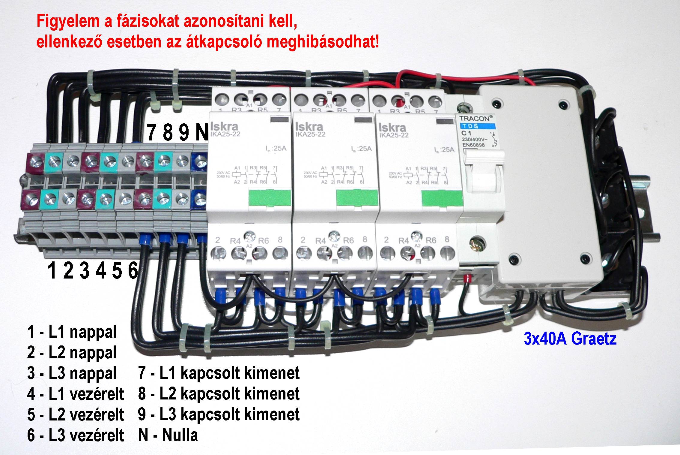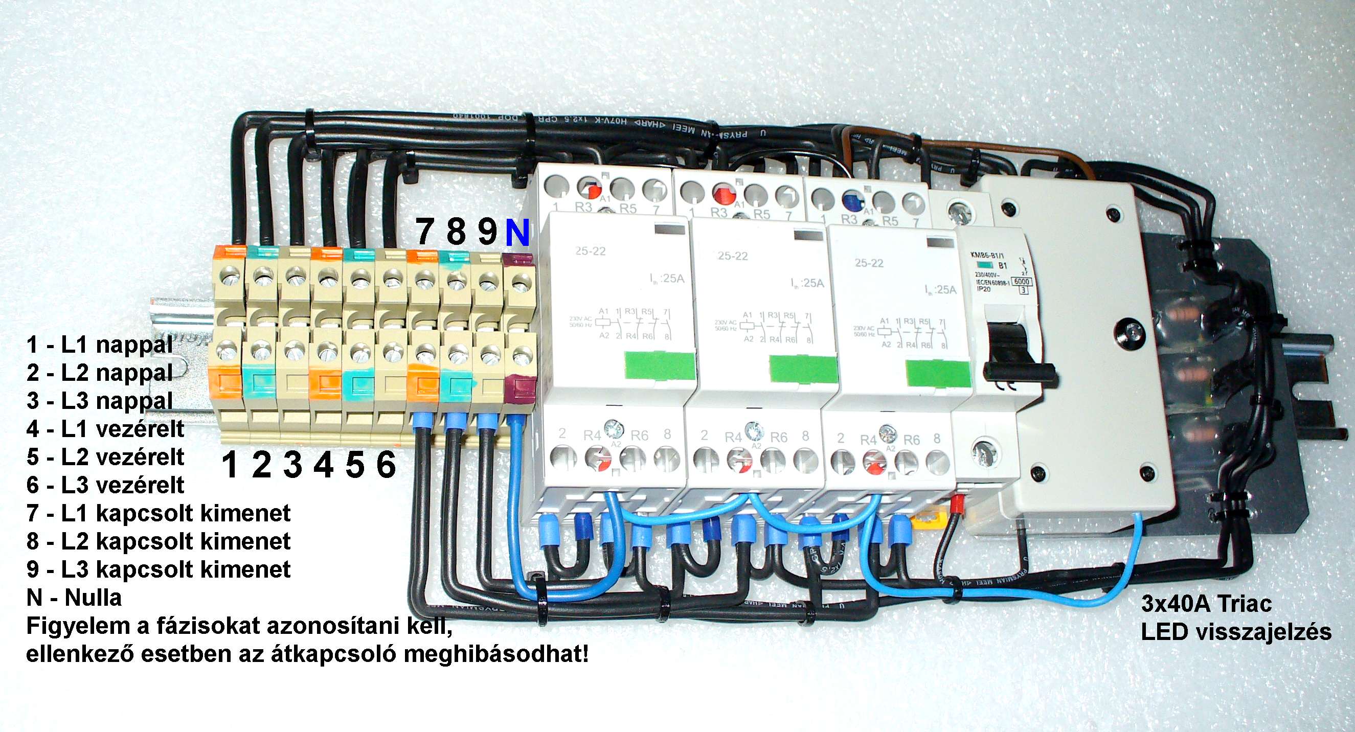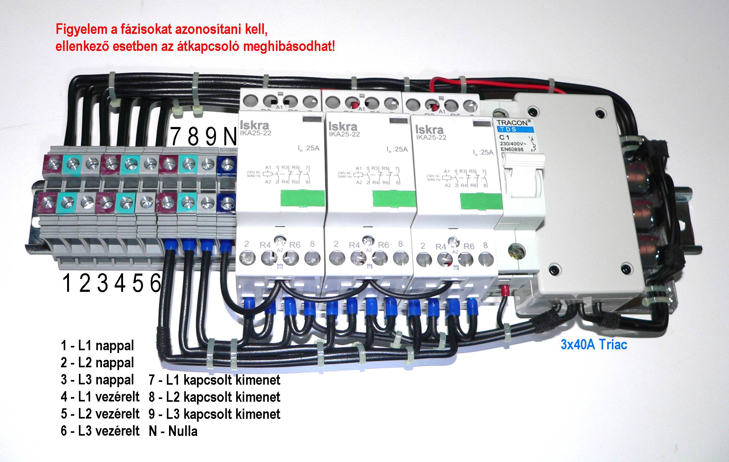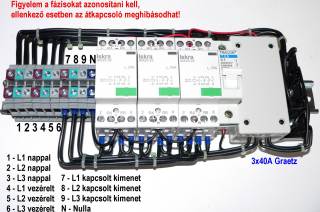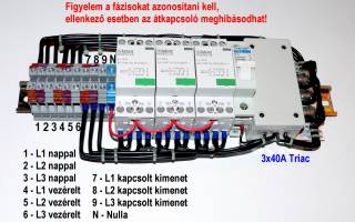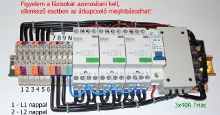 - A 3x40A-es átkapcsolók esetében kb. ugyanaz van mint terheléssel. Amikor megjelenik a vezérelt áram, akkor meghúznak a mágneskapcsolók,