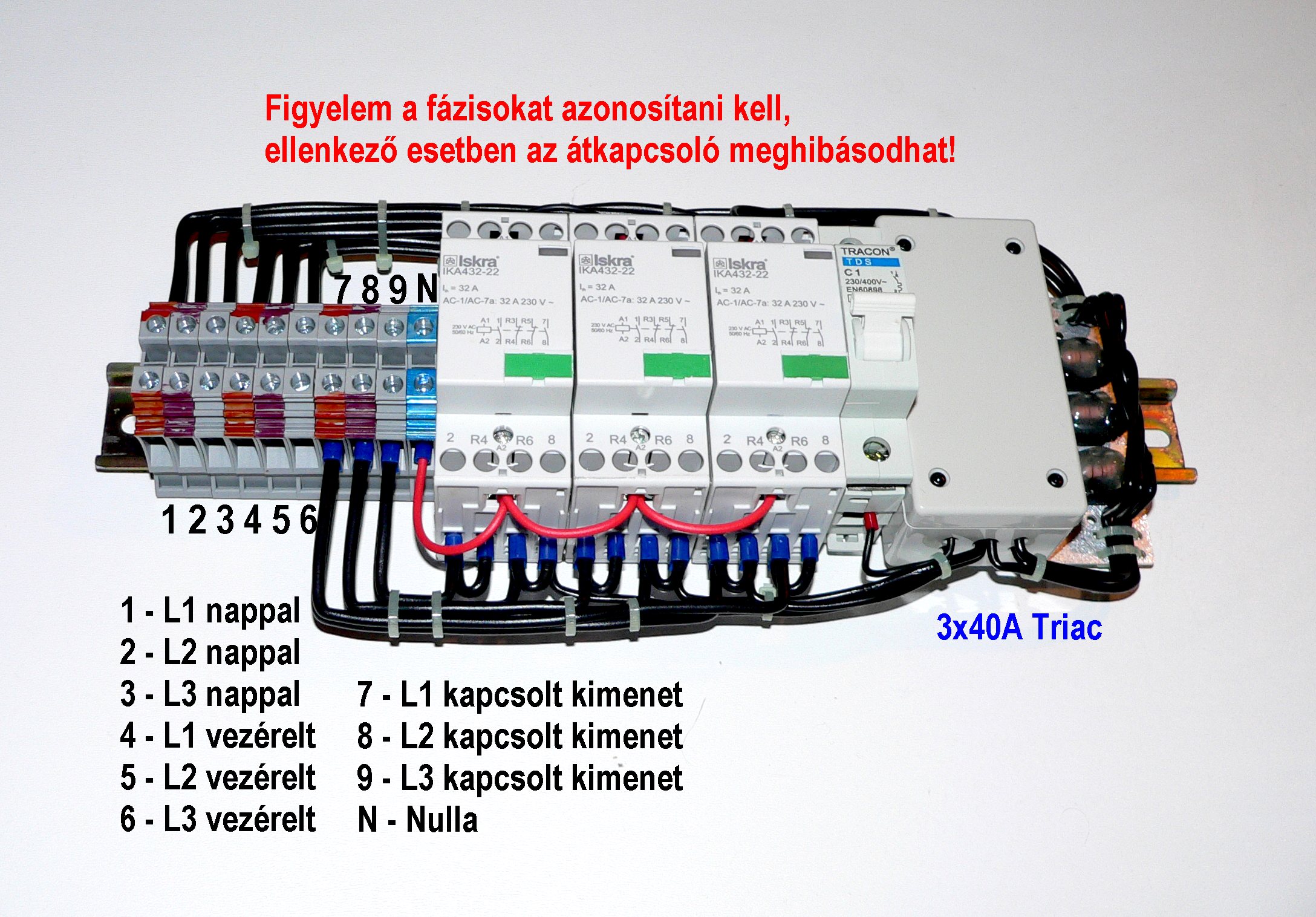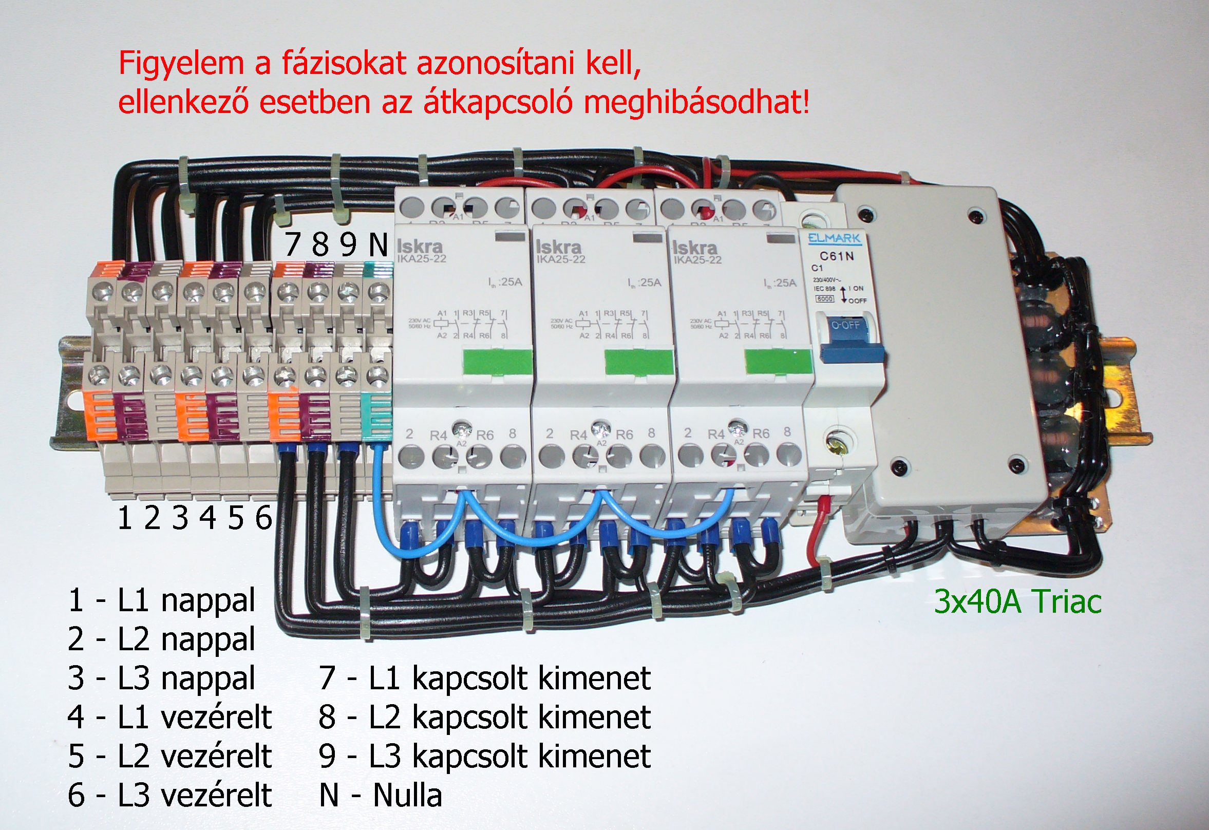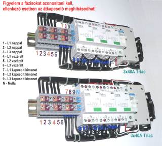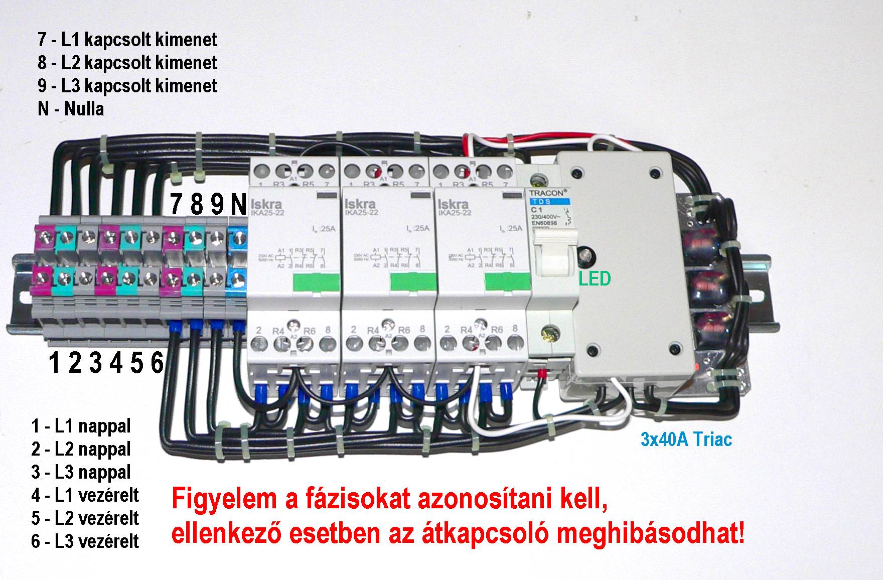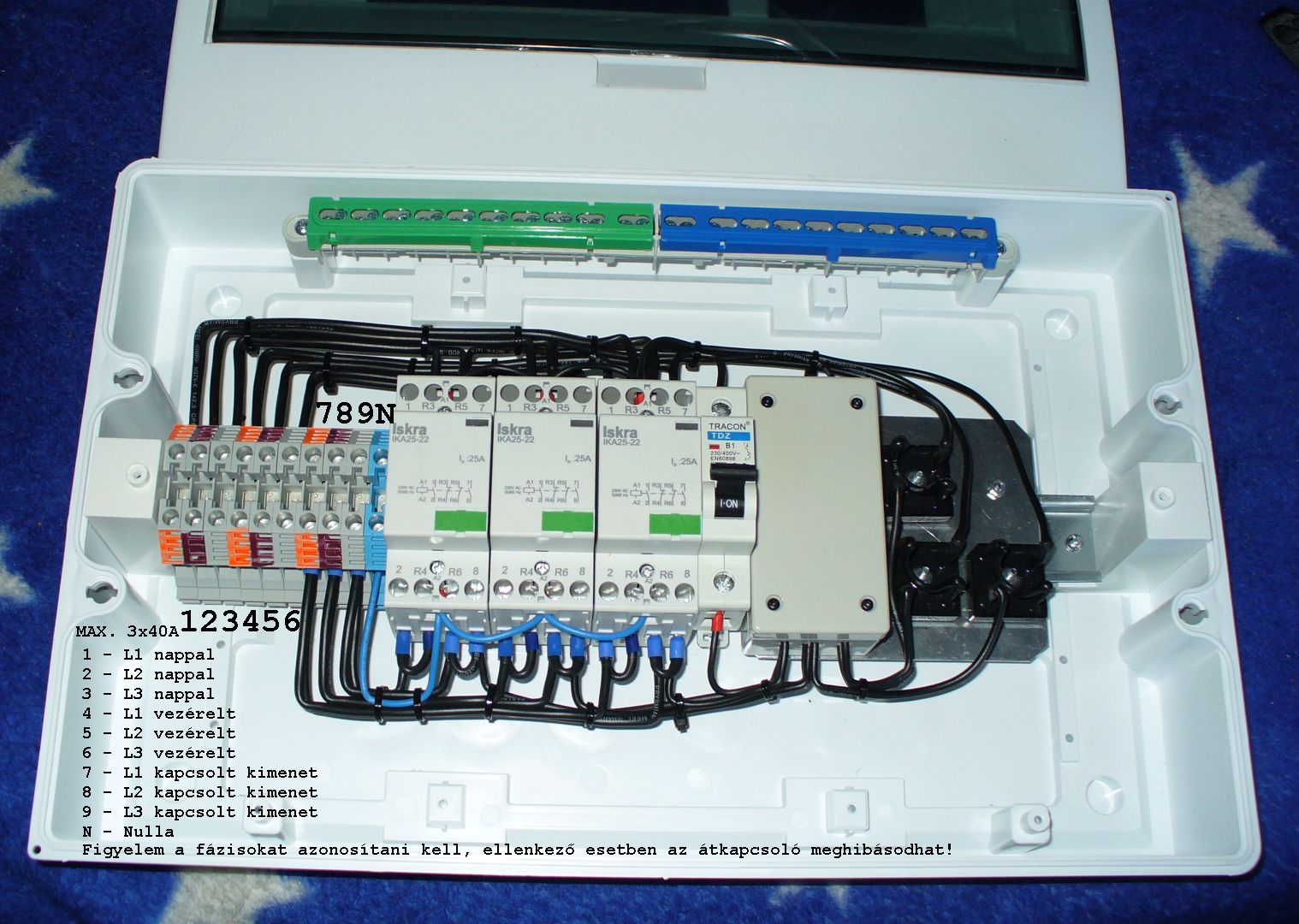 - A 3x40A-es átkapcsolók esetében kb. ugyanaz van mint terheléssel. Amikor megjelenik a vezérelt áram, akkor meghúznak a mágneskapcsolók,