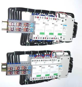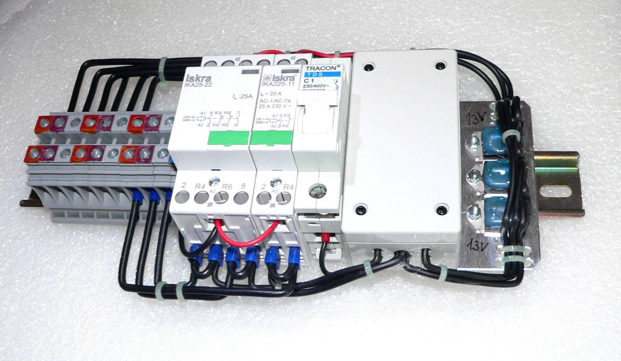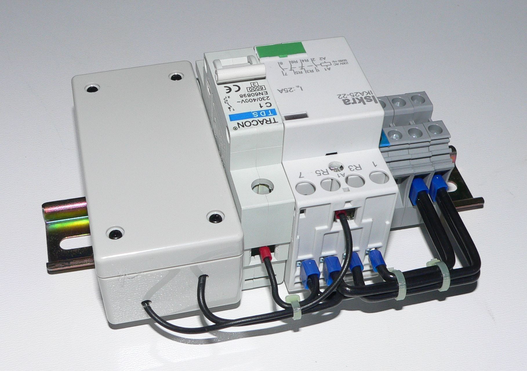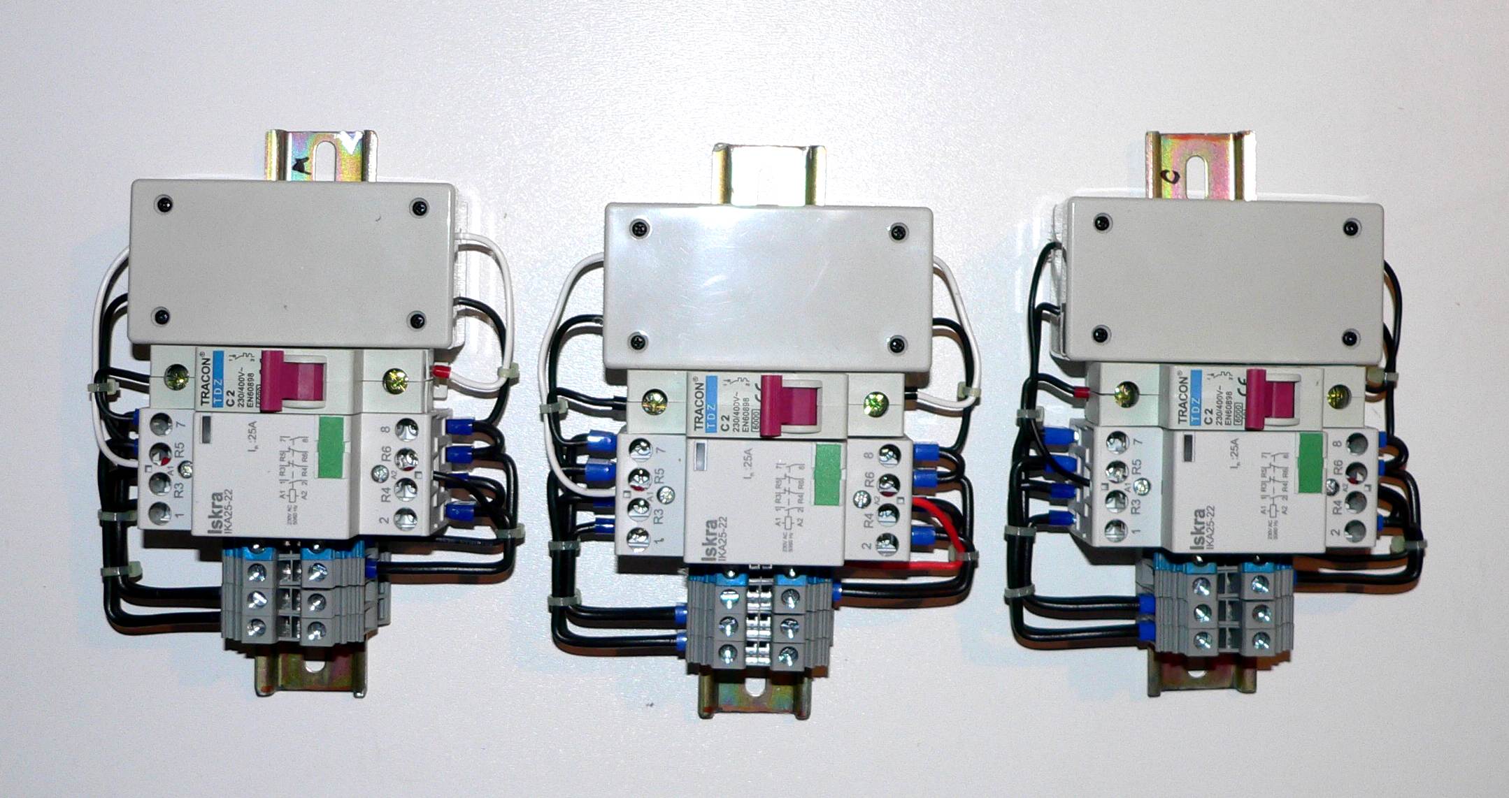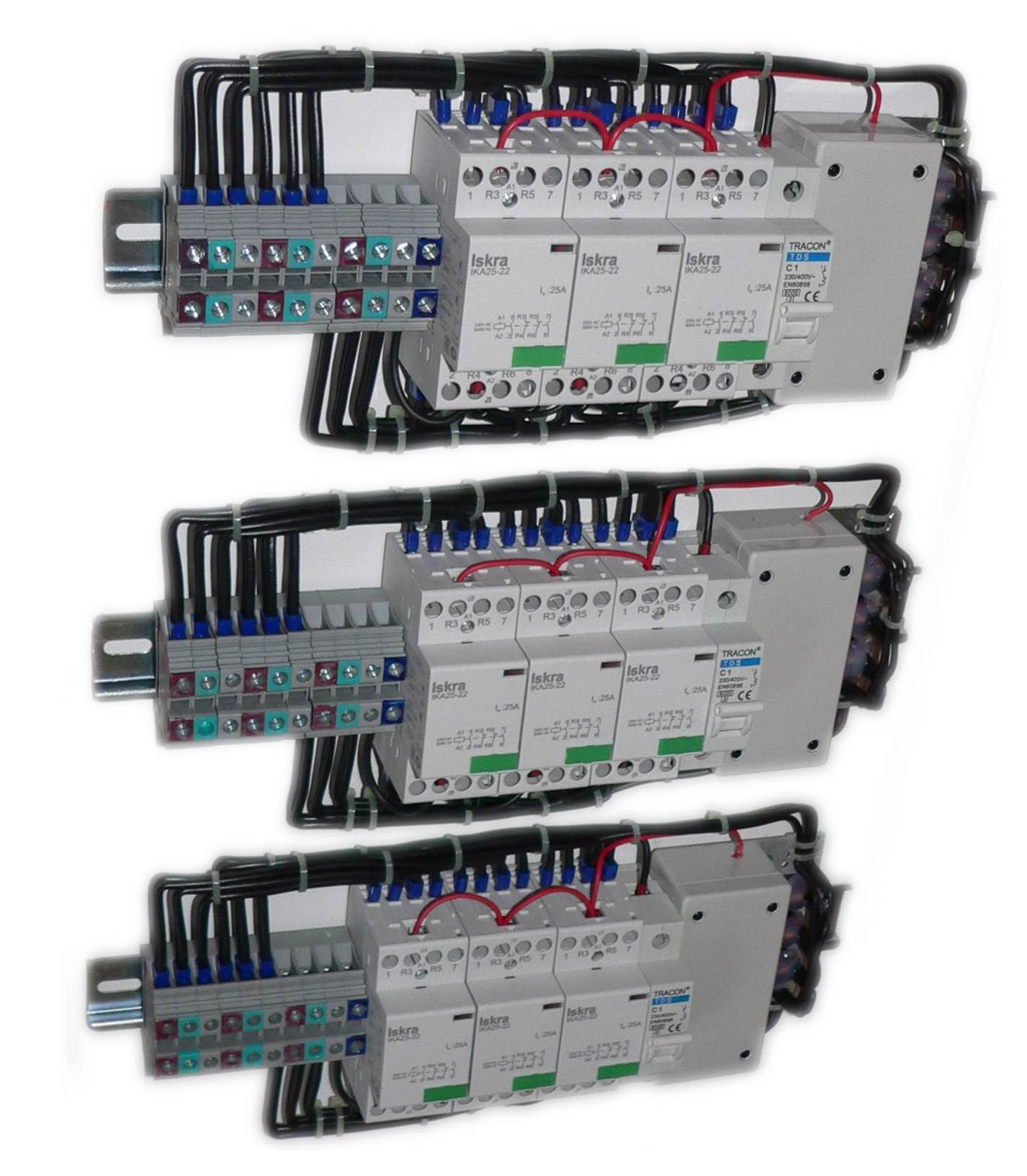 Az alábbi fotókon egy egyszerûbb 1 fázisú, és egy 3 fázisú átkapcsoló látható, szabványos C sínre (DIN sínre, kalapsínre)