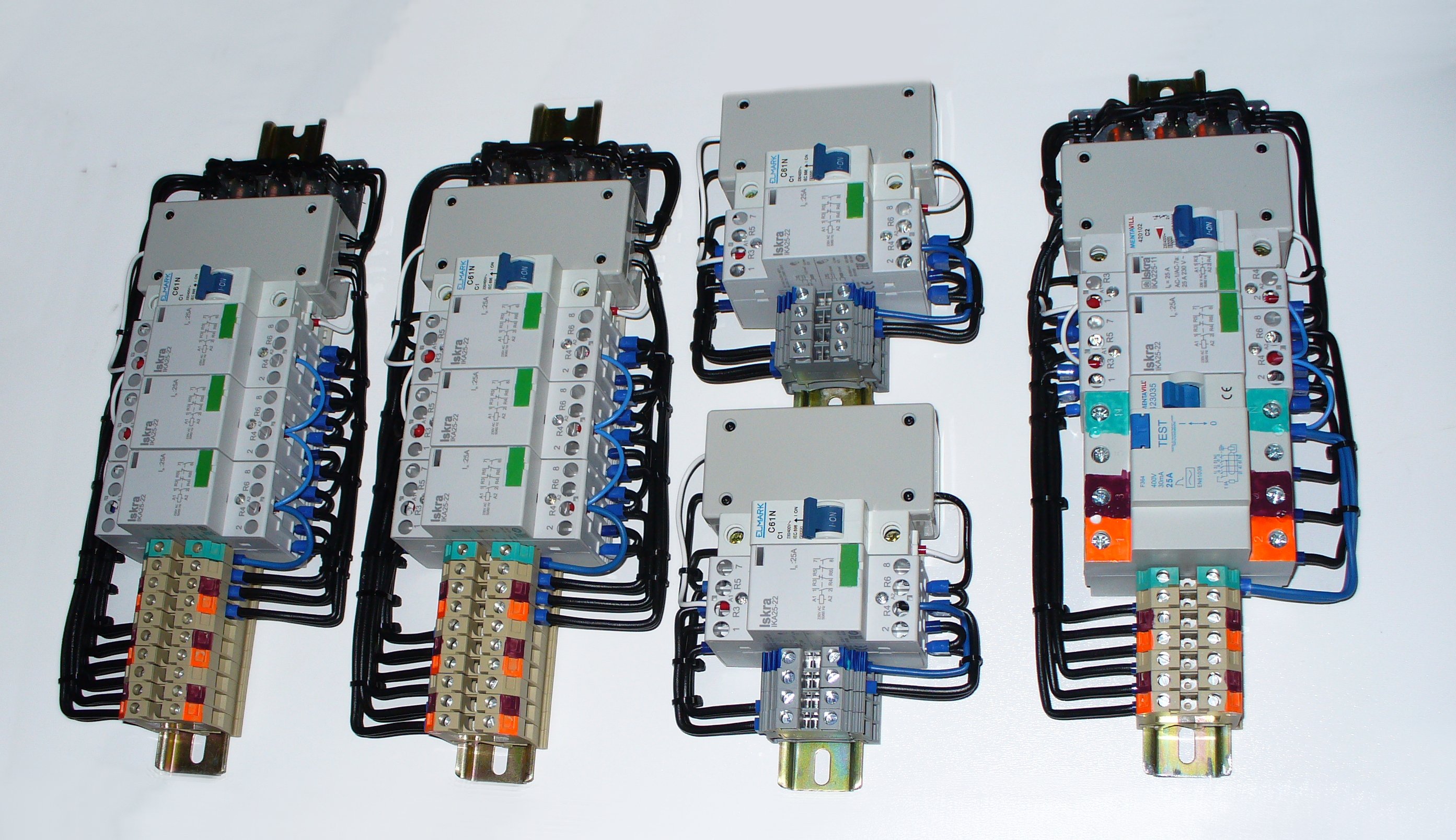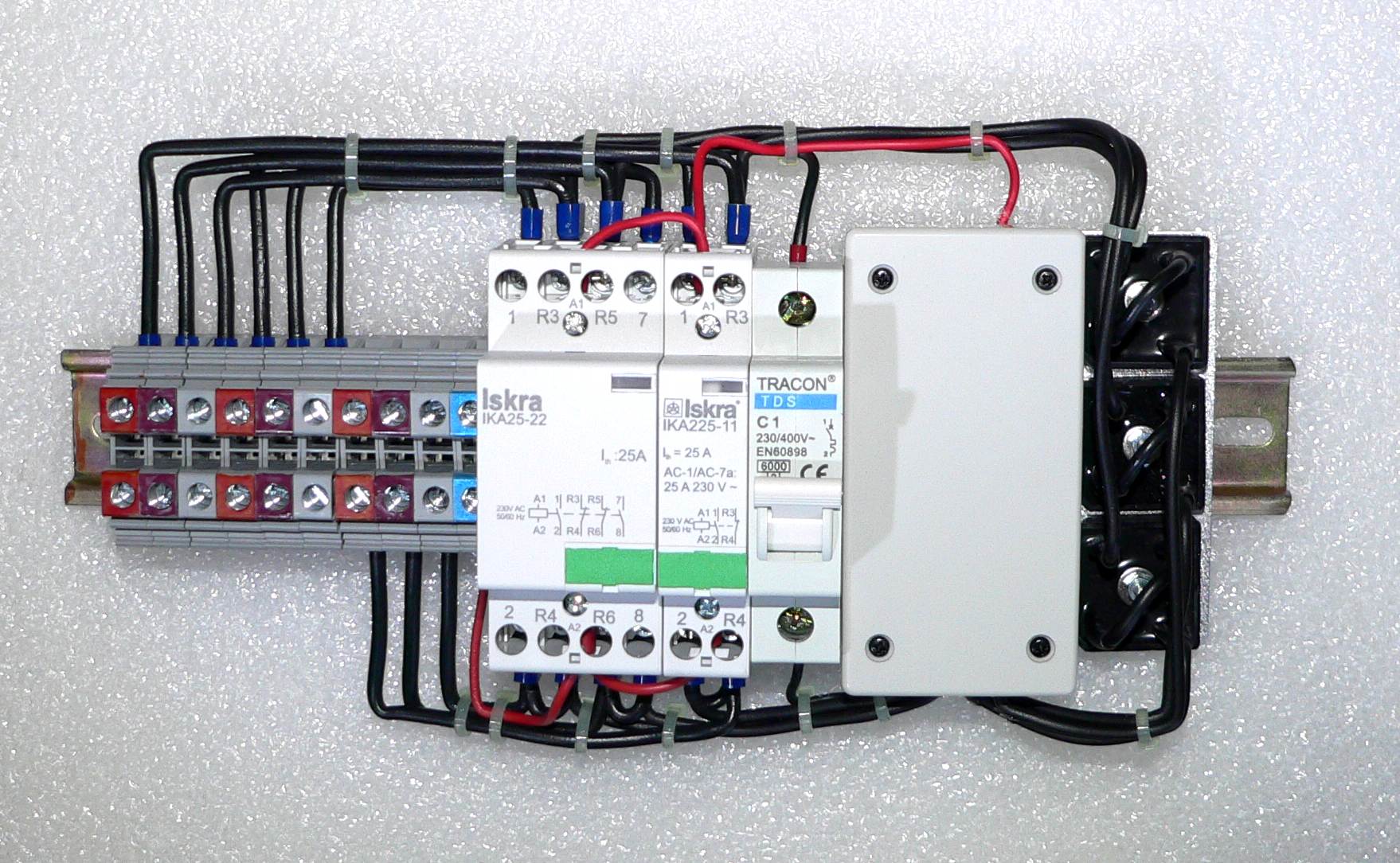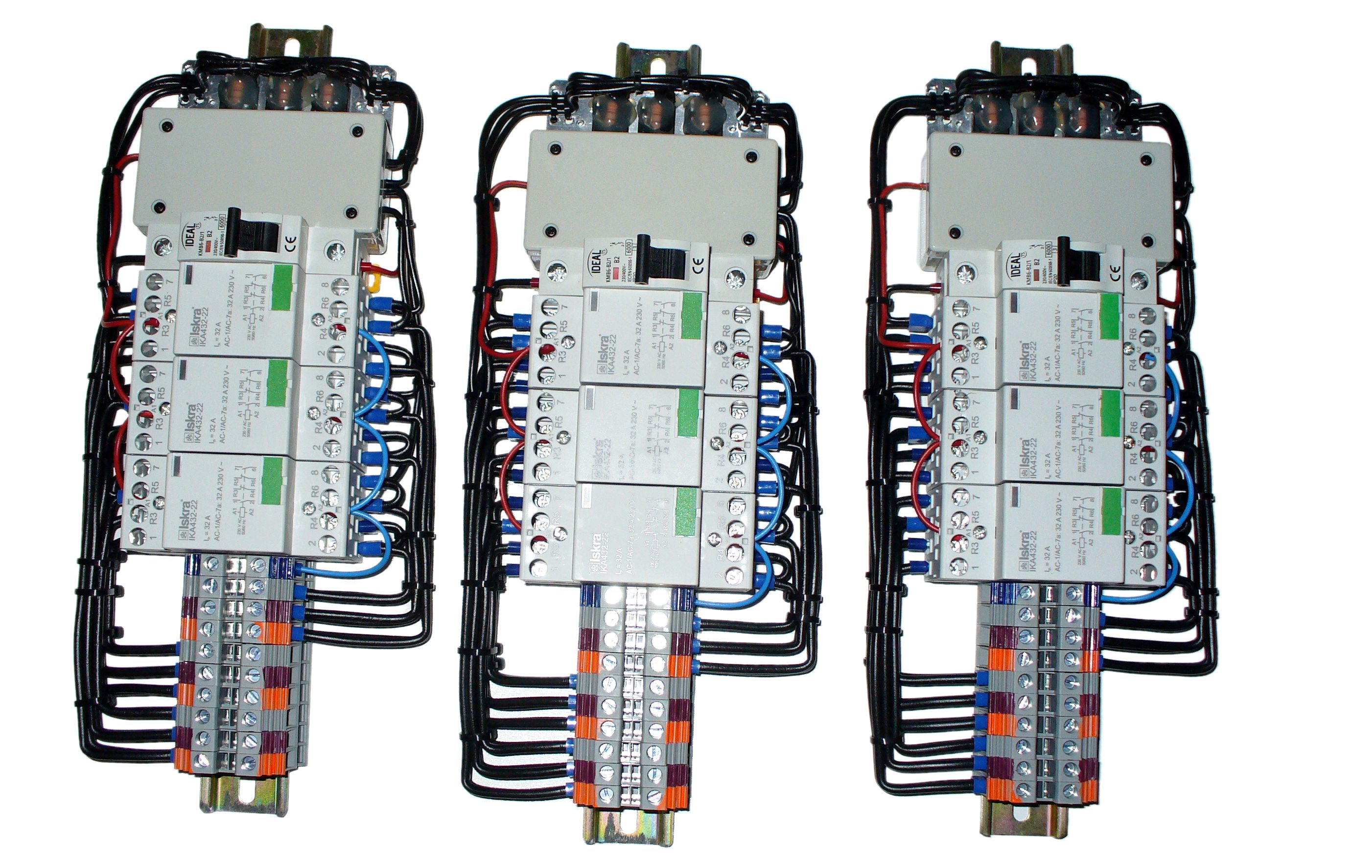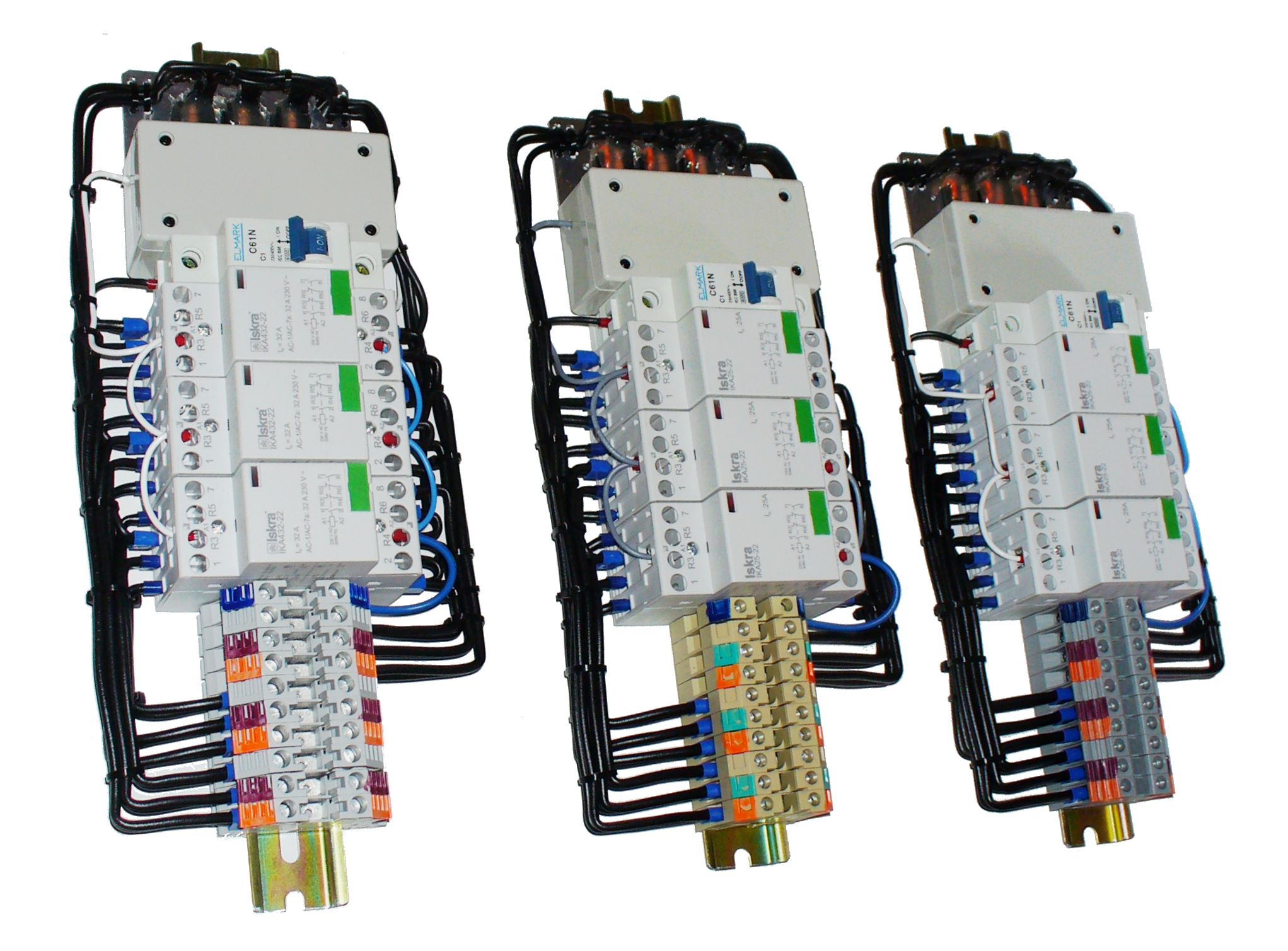 Az alábbi fotókon egy egyszerûbb 1 fázisú, és egy 3 fázisú átkapcsoló látható, szabványos C sínre (DIN sínre, kalapsínre)
