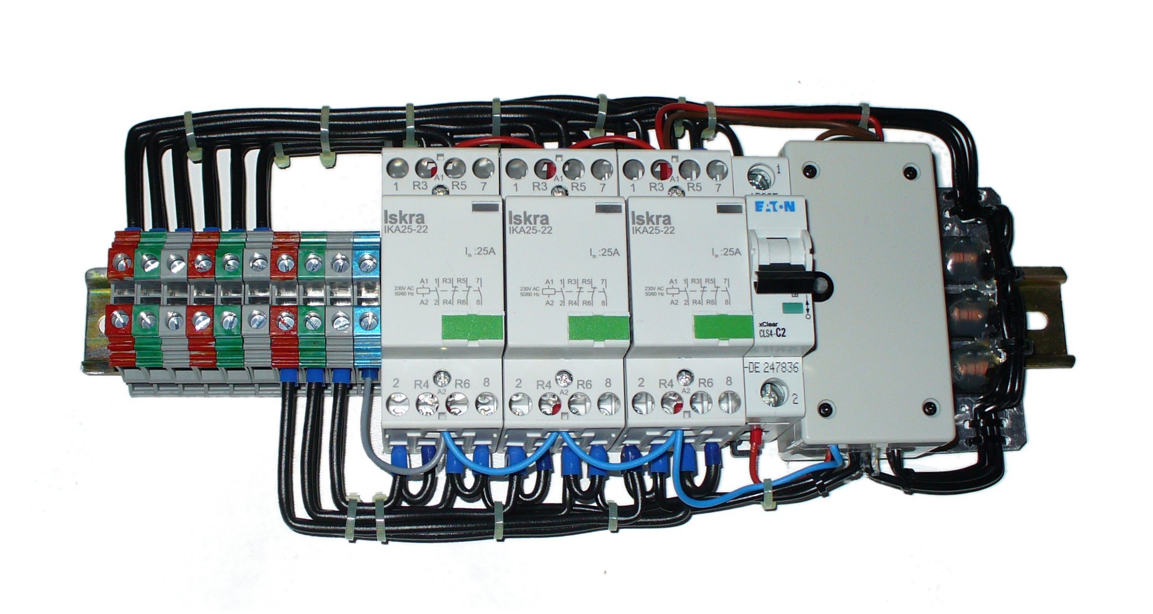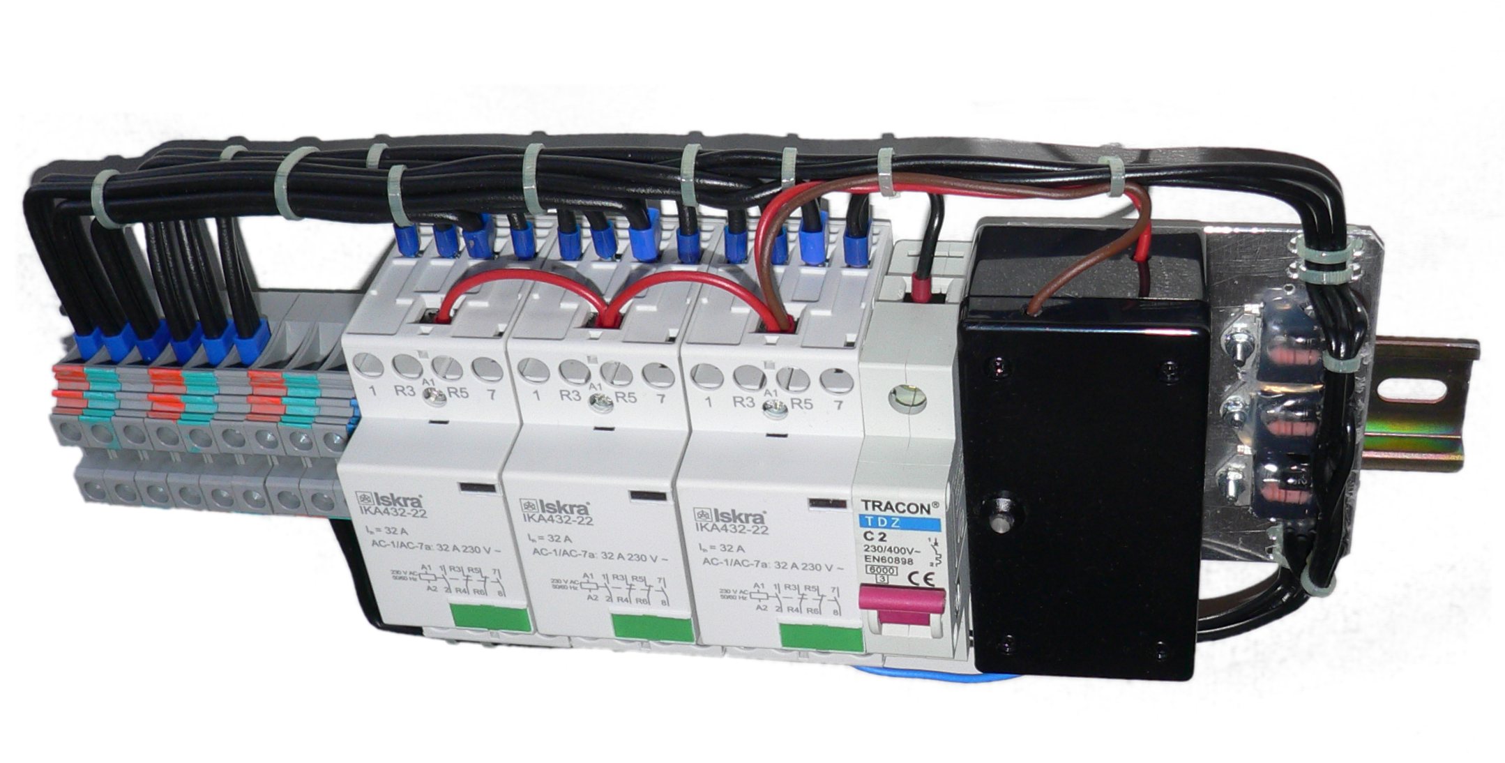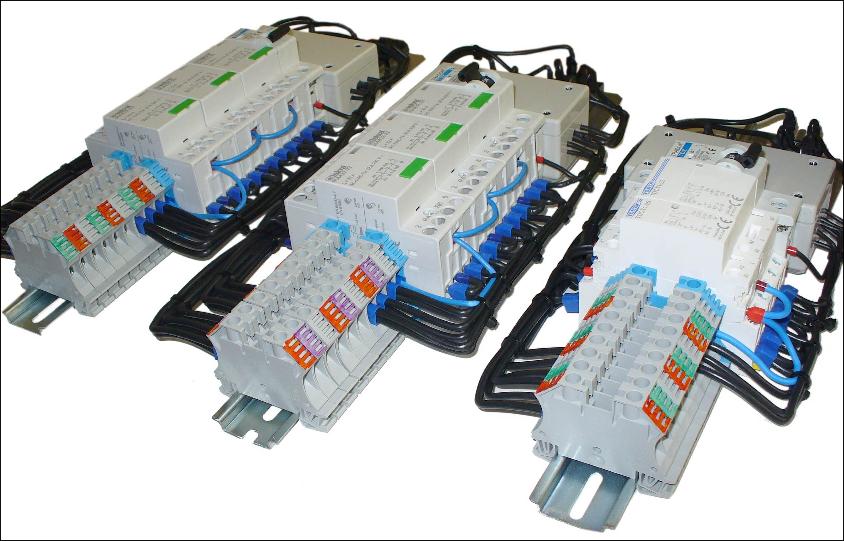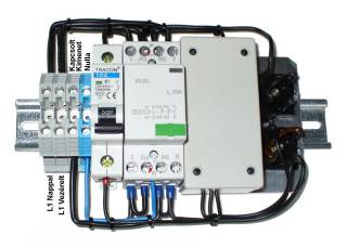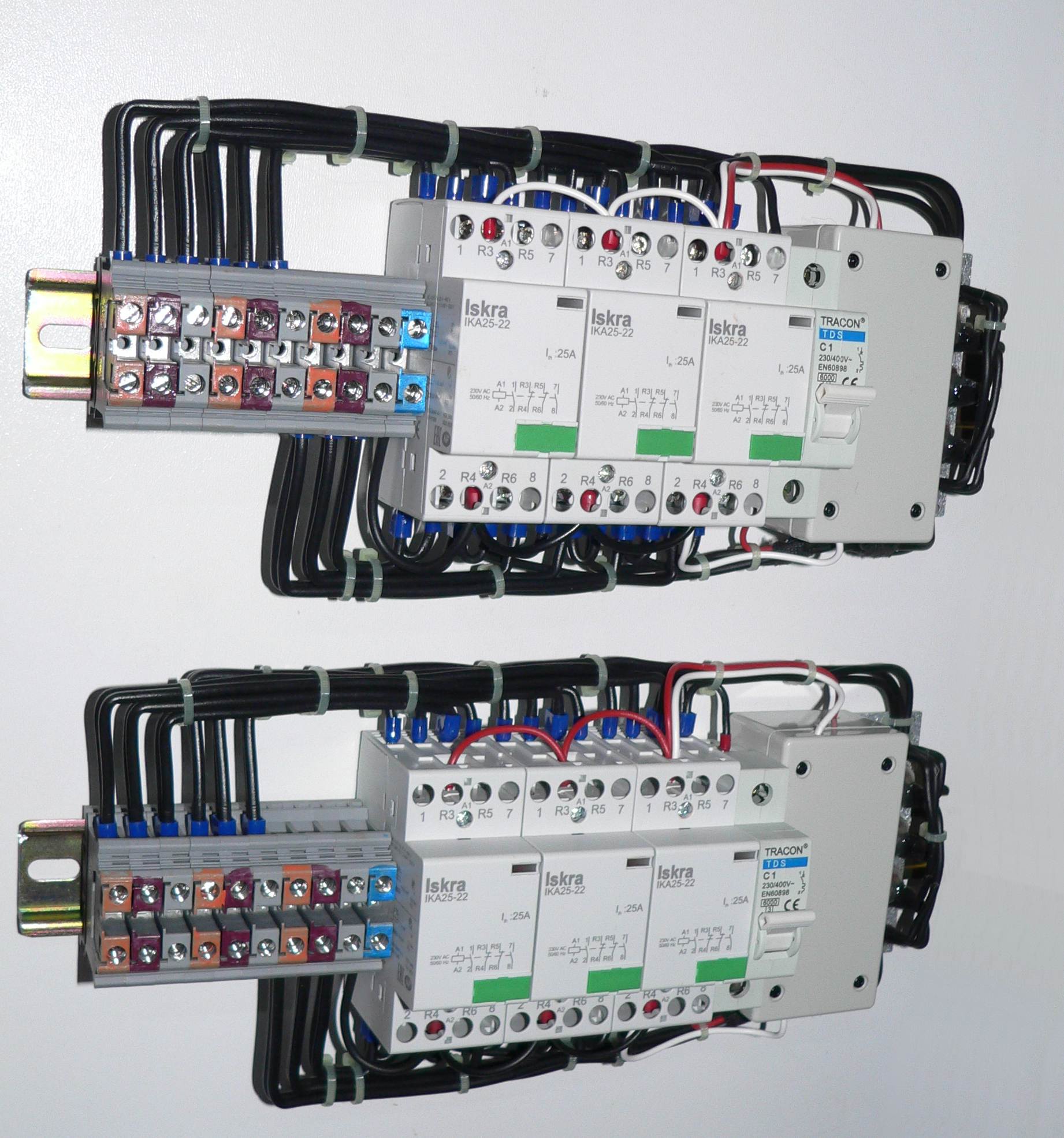 Az alábbi fotókon egy egyszerûbb 1 fázisú, és egy 3 fázisú átkapcsoló látható, szabványos C sínre (DIN sínre, kalapsínre)