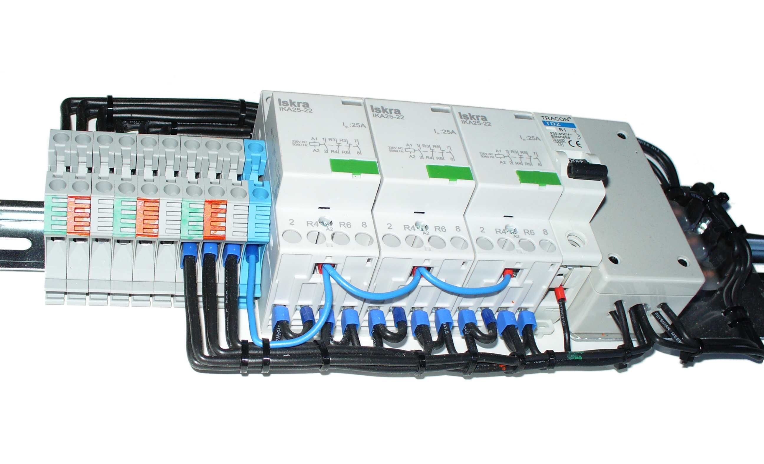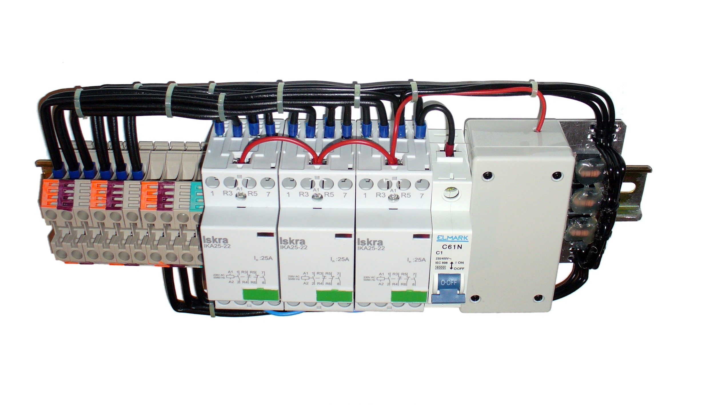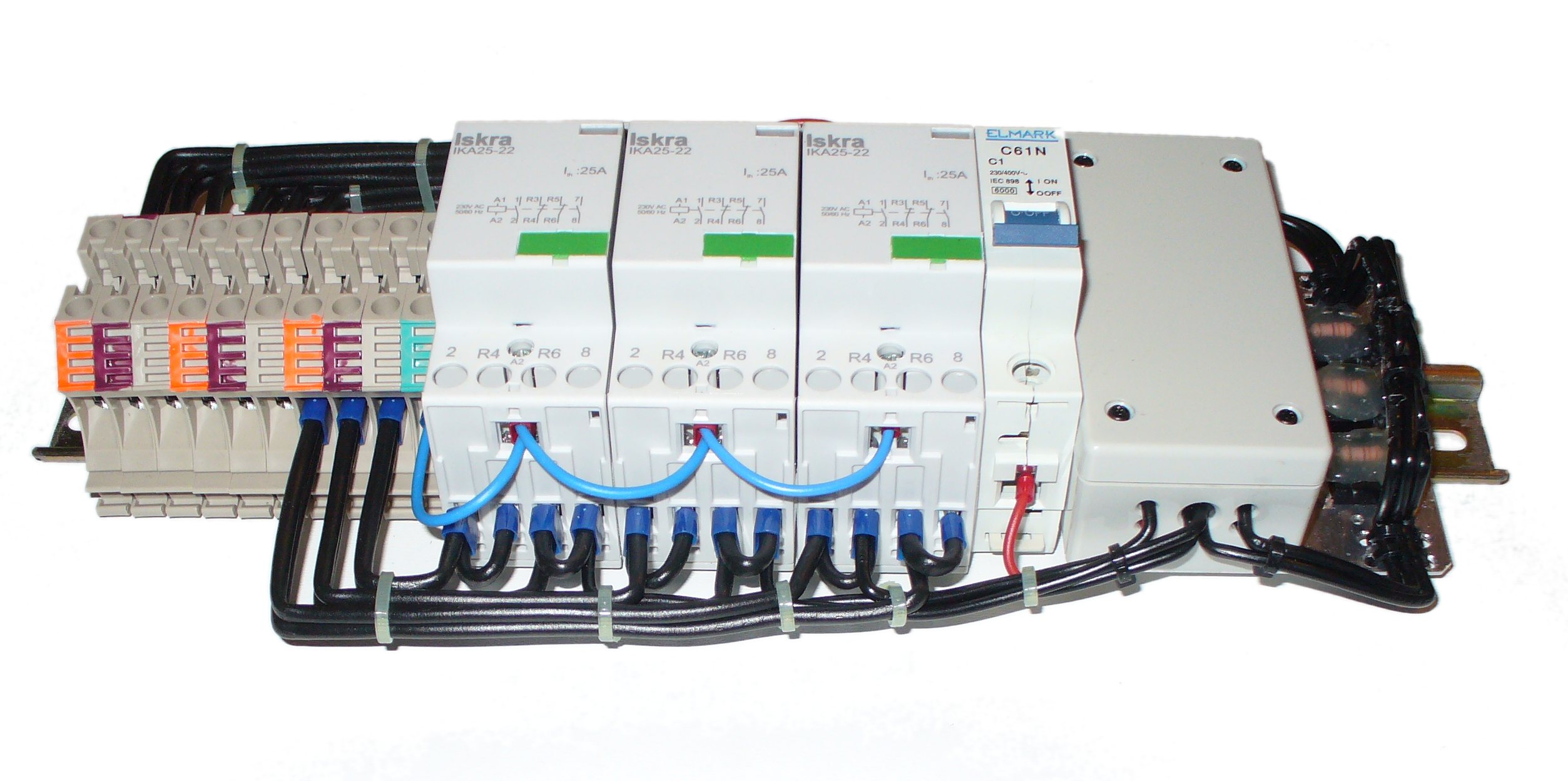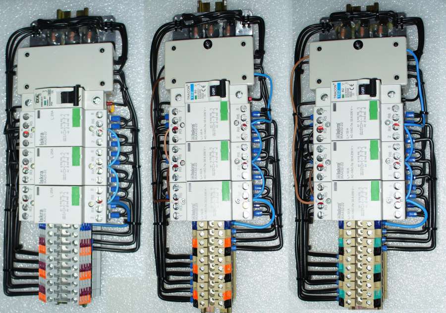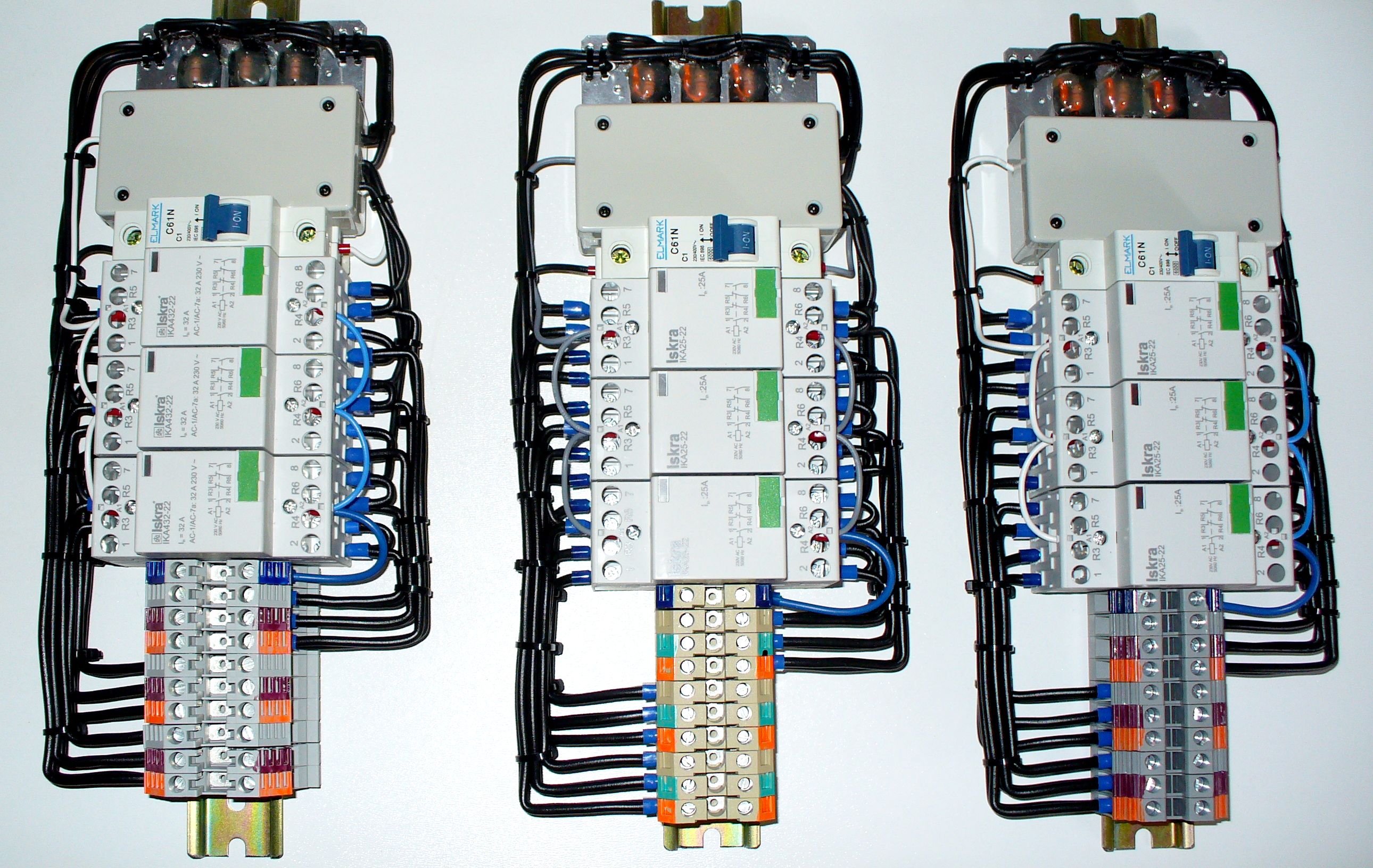 Az alábbi fotókon egy egyszerûbb 1 fázisú, és egy 3 fázisú átkapcsoló látható, szabványos C sínre (DIN sínre, kalapsínre)