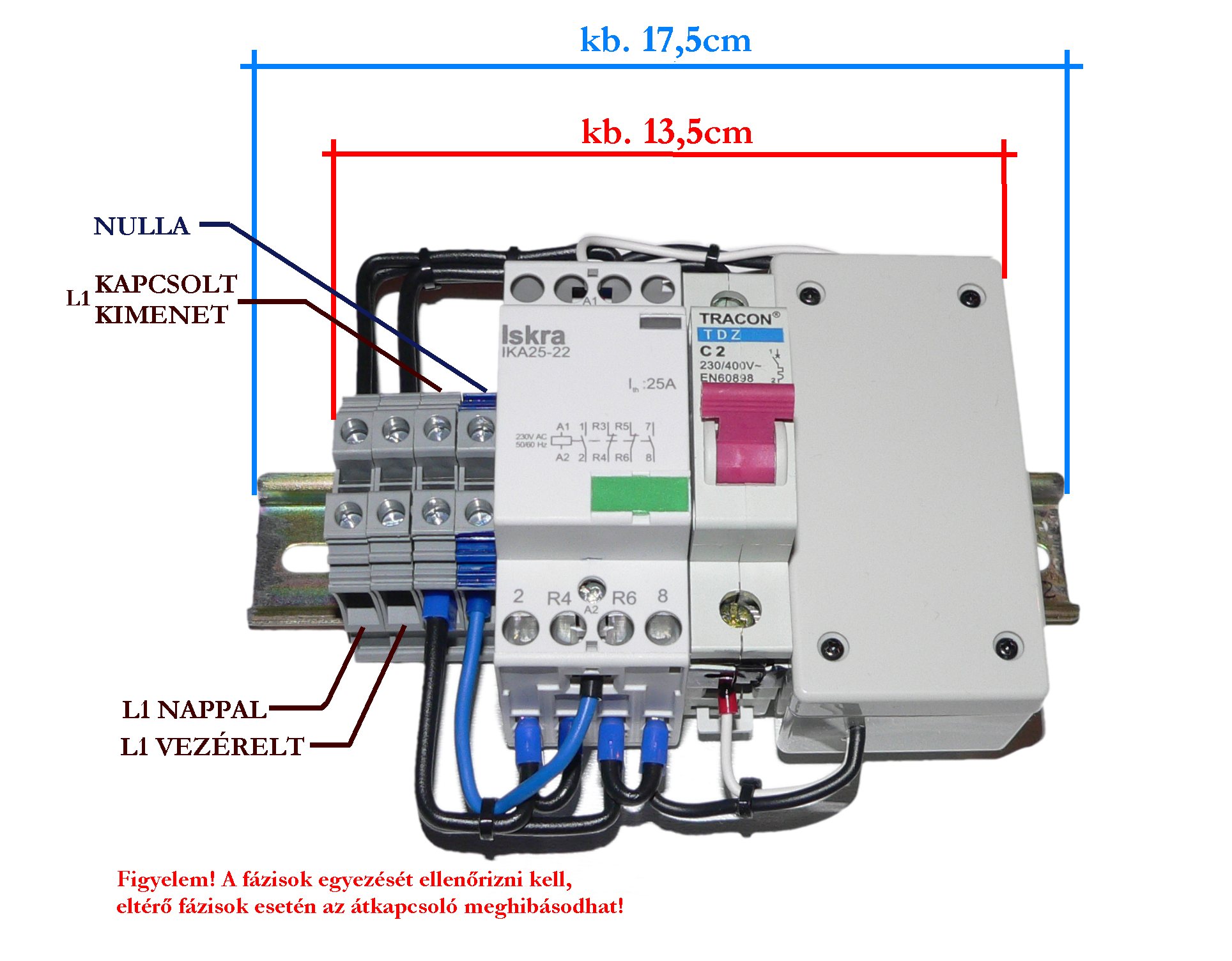 csak akkor lehetséges, ha a vezérelt áram és a nappali áram azonos fázisra van kapcsolva,