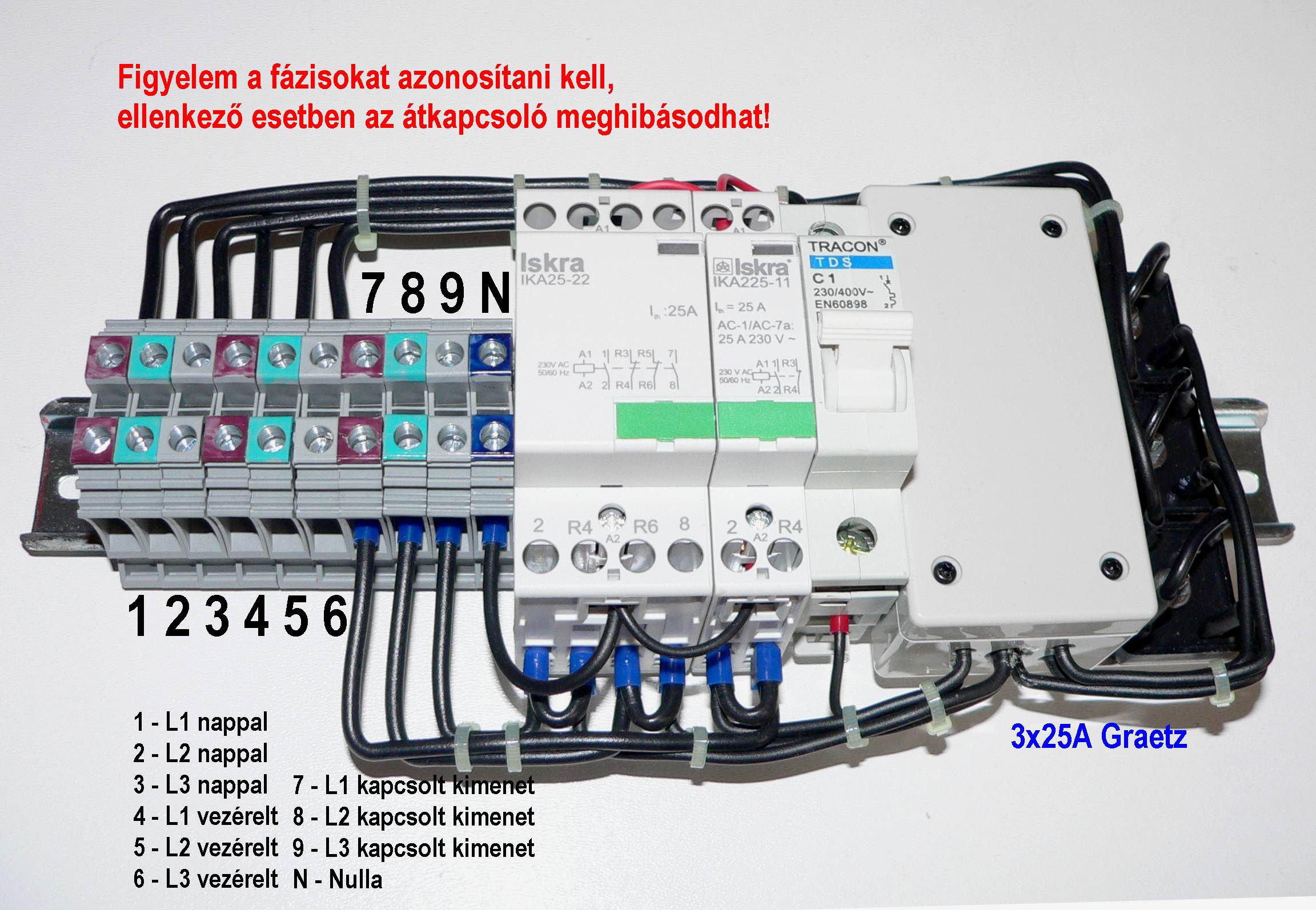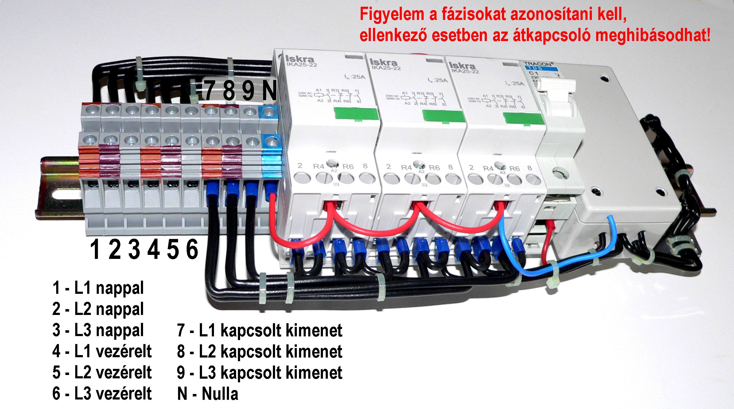 Háromfázisú megoldás esetén a fázisokat azonosítani (párosítani) kell, hogy az átkapcsolás mindig