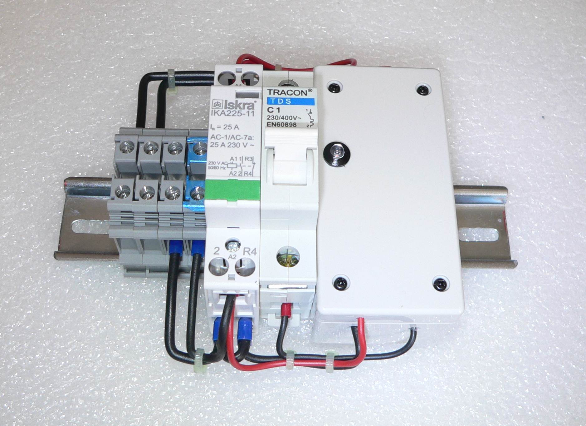 A kapcsolás muködése elég egyszeru, amikor megjelenik a vezérelt áram, akkor a kismegszakítón keresztül
