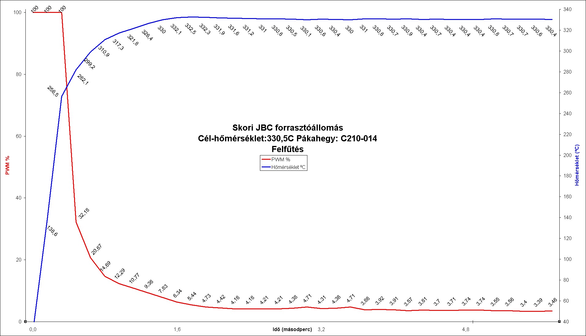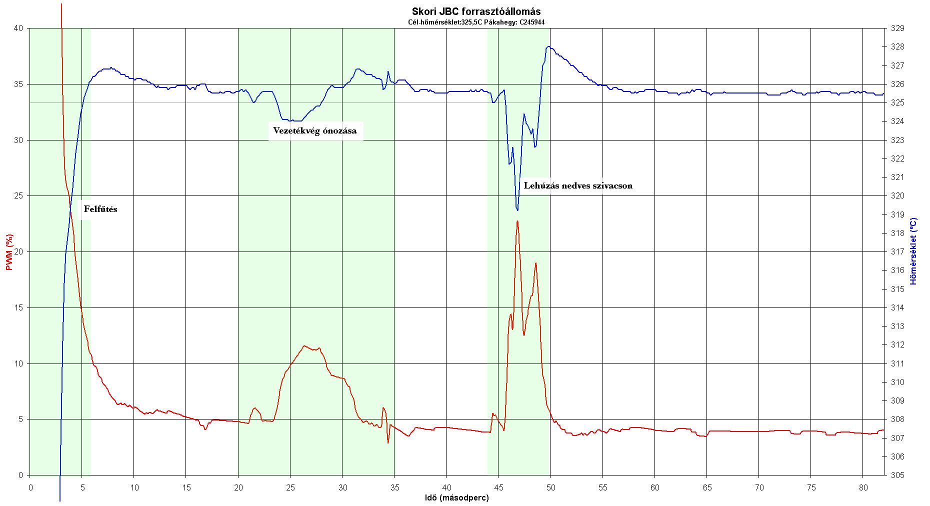 Végeztem néhány újabb mérést, a JBC210-es pákaheggyel,