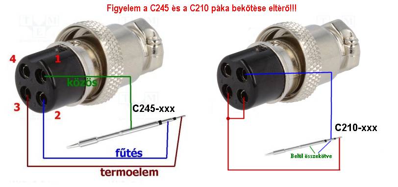Az alábbi képen látható a kétféle pákahegy bekötése