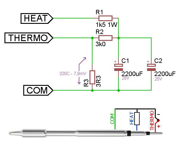 nem több mint 10...20W, ennyi kell a forrasztópáka hõmérsékletének tartásához. PID szabályzással a páka fûtõbetétje pontosan a szükéges